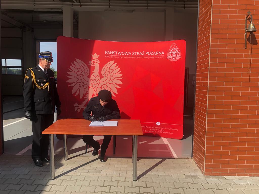 W dniu 1 czerwca 2022 roku str. Radosław Dziubczyński rozpoczął służbę w Wydziale ds. Operacyjnych i Kontrolno-Rozpoznawczych w Międzychodzie. Ślubowanie, które złożył nowo przyjęty funkcjonariusz przyjął Komendant Powiatowy PSP w Międzychodzie bryg. Mariusz Trajnowski. Ślubowanie to bardzo uroczysty i podniosły moment w życiu zawodowym każdego strażaka.