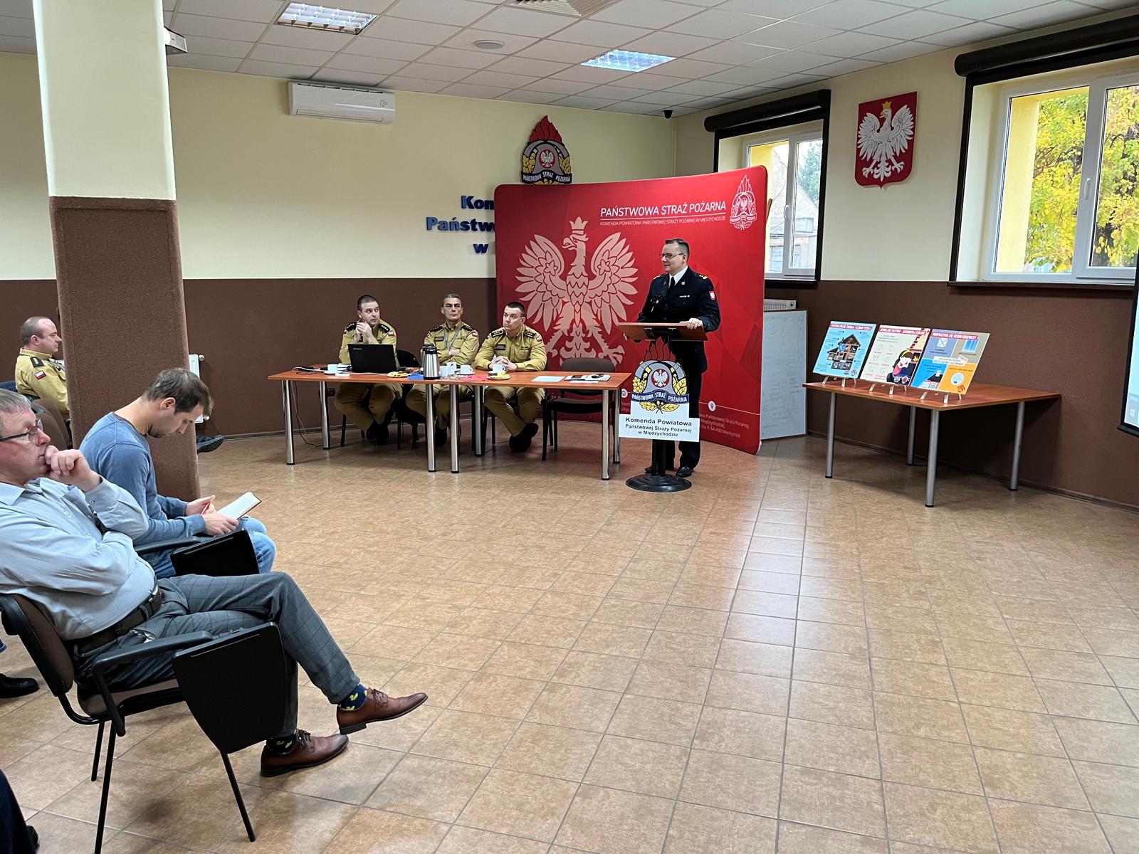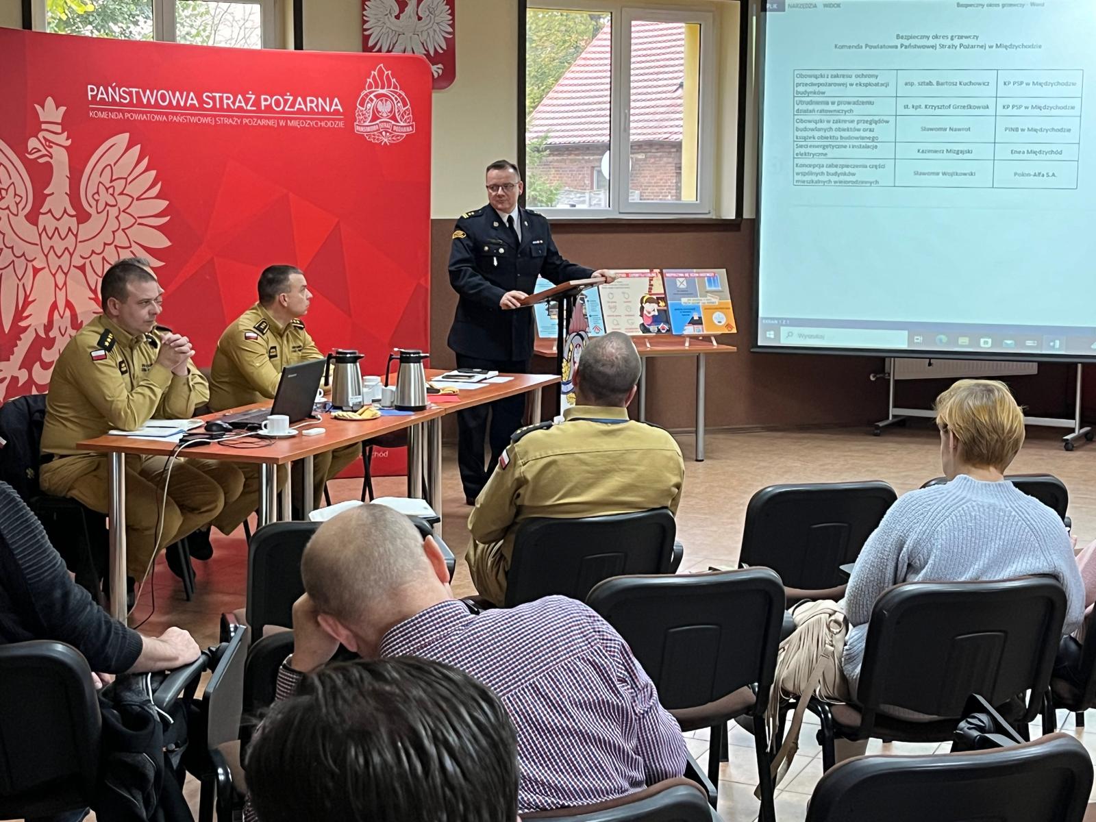 W dniu 14 listopada 2024 roku w siedzibie Komendy Powiatowej Państwowej Straży Pożarnej w Międzychodzie odbyło się spotkanie z zarządcami budynków oraz osobami mającymi wpływ na bezpieczeństwo pożarowe obiektów budowlanych, którego celem było omówienie kwestii związanych z bezpieczeństwem przeciwpożarowym w okresie grzewczym.