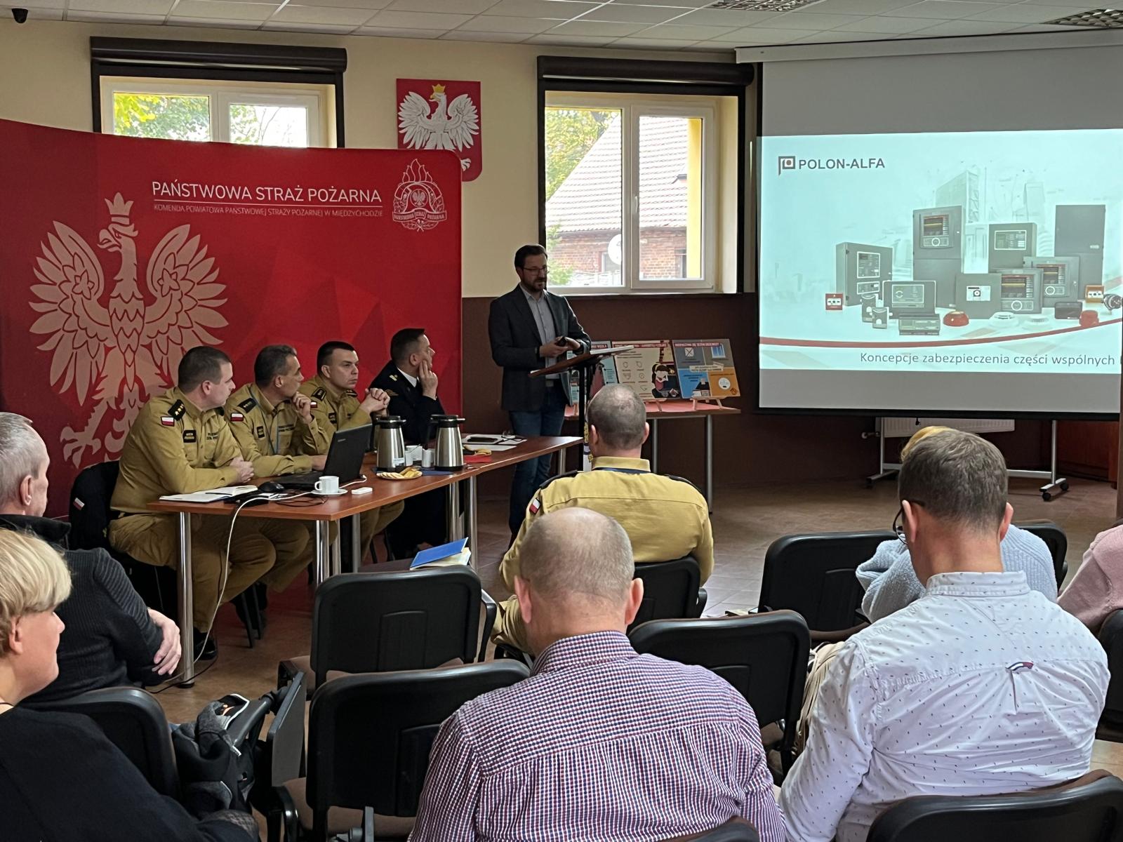 Na zakończenie, Pan Sławomir Wojtkowski z firmy POLON-ALFA S.A. przedstawił koncepcje zabezpieczenia części wspólnych budynków mieszkalnych, w tym systemów przeciwpożarowych, takich jak czujki dymu. Zwrócił uwagę na znaczenie instalacji takich systemów w budynkach wielorodzinnych, które mogą znacząco zwiększyć bezpieczeństwo mieszkańców w przypadku zagrożenia pożarowego.