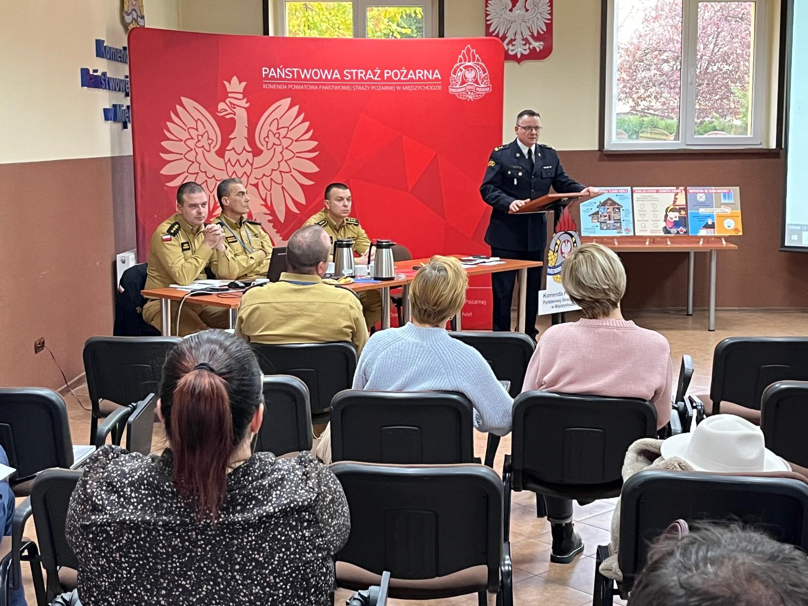 Spotkanie zakończył Komendant Powiatowy PSP w Międzychodzie bryg. Roman Grzebieta, dziękując wszystkim prelegentom za cenne informacje oraz uczestnikom za aktywne uczestnictwo. Komendant podkreślił, jak ważne jest utrzymywanie wysokich standardów bezpieczeństwa w obiektach, szczególnie w okresie grzewczym, kiedy ryzyko wystąpienia pożaru jest wyższe.