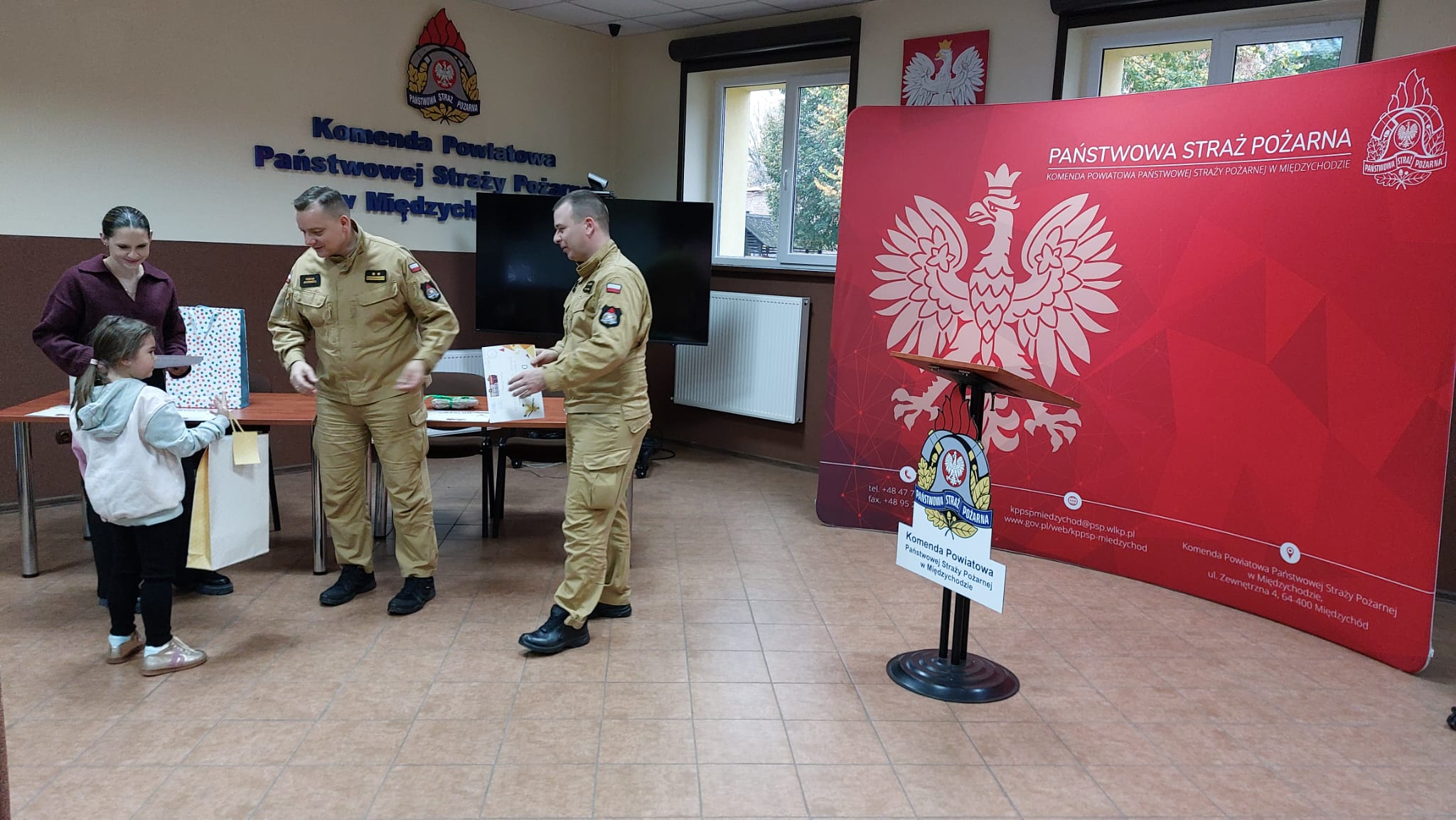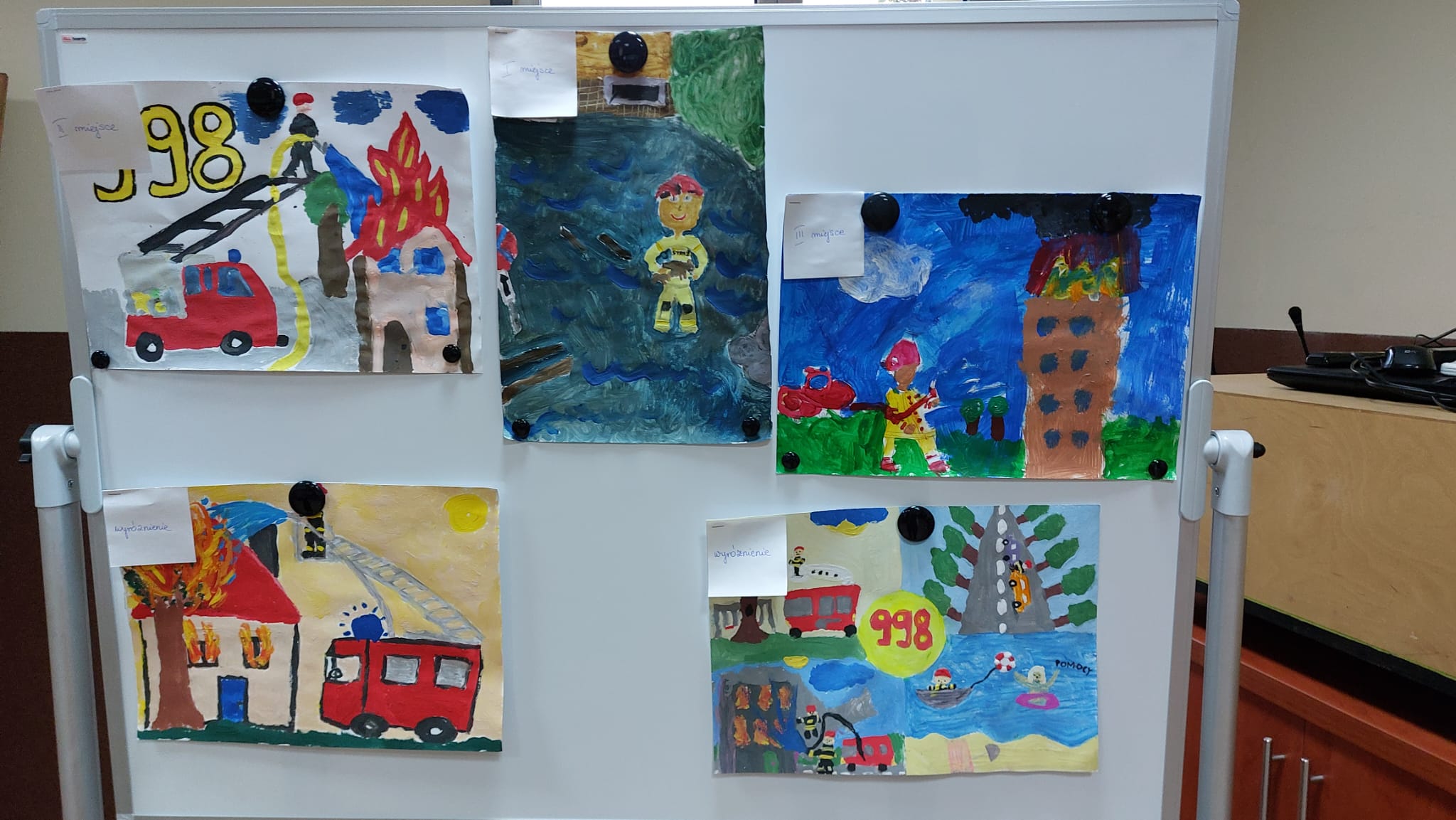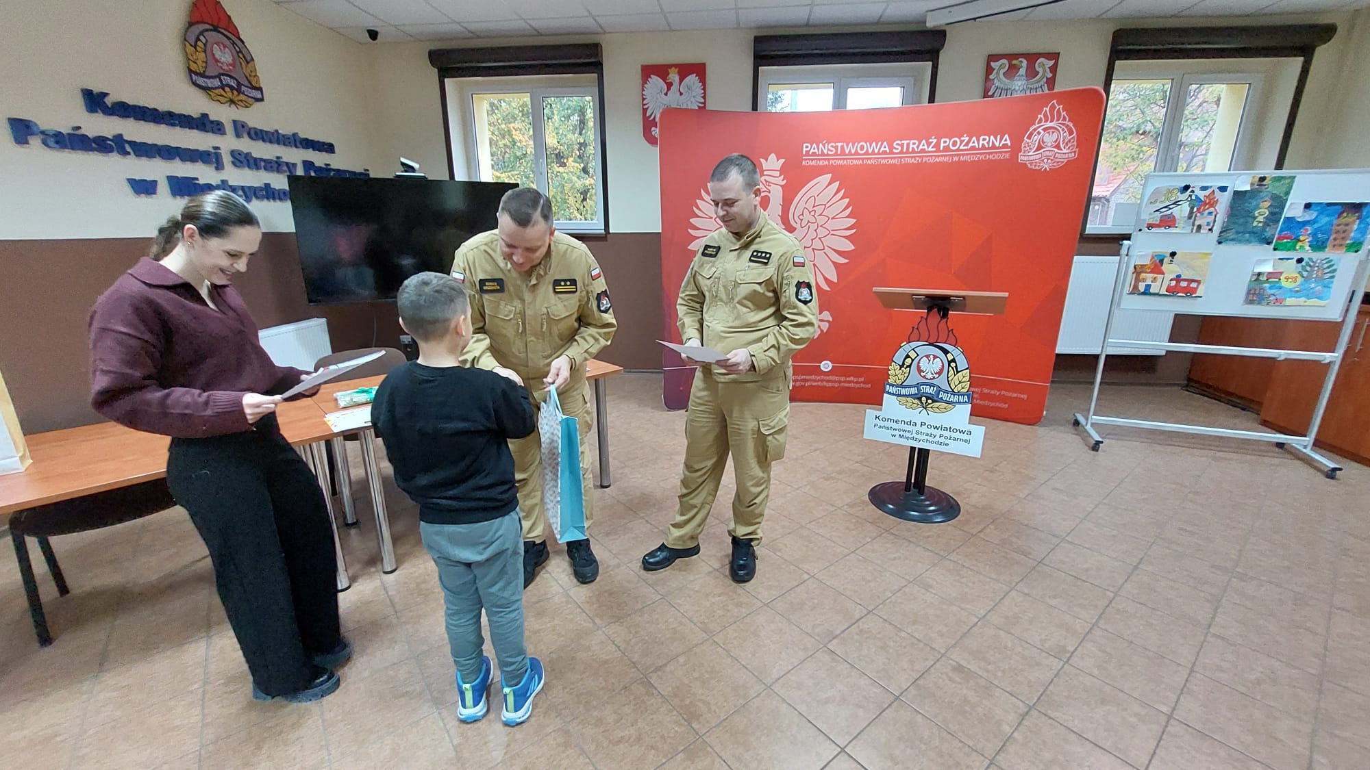 Dzieci zostały uhonorowane nagrodami za swoje prace plastyczne, które promowały zasady bezpieczeństwa przeciwpożarowego.
