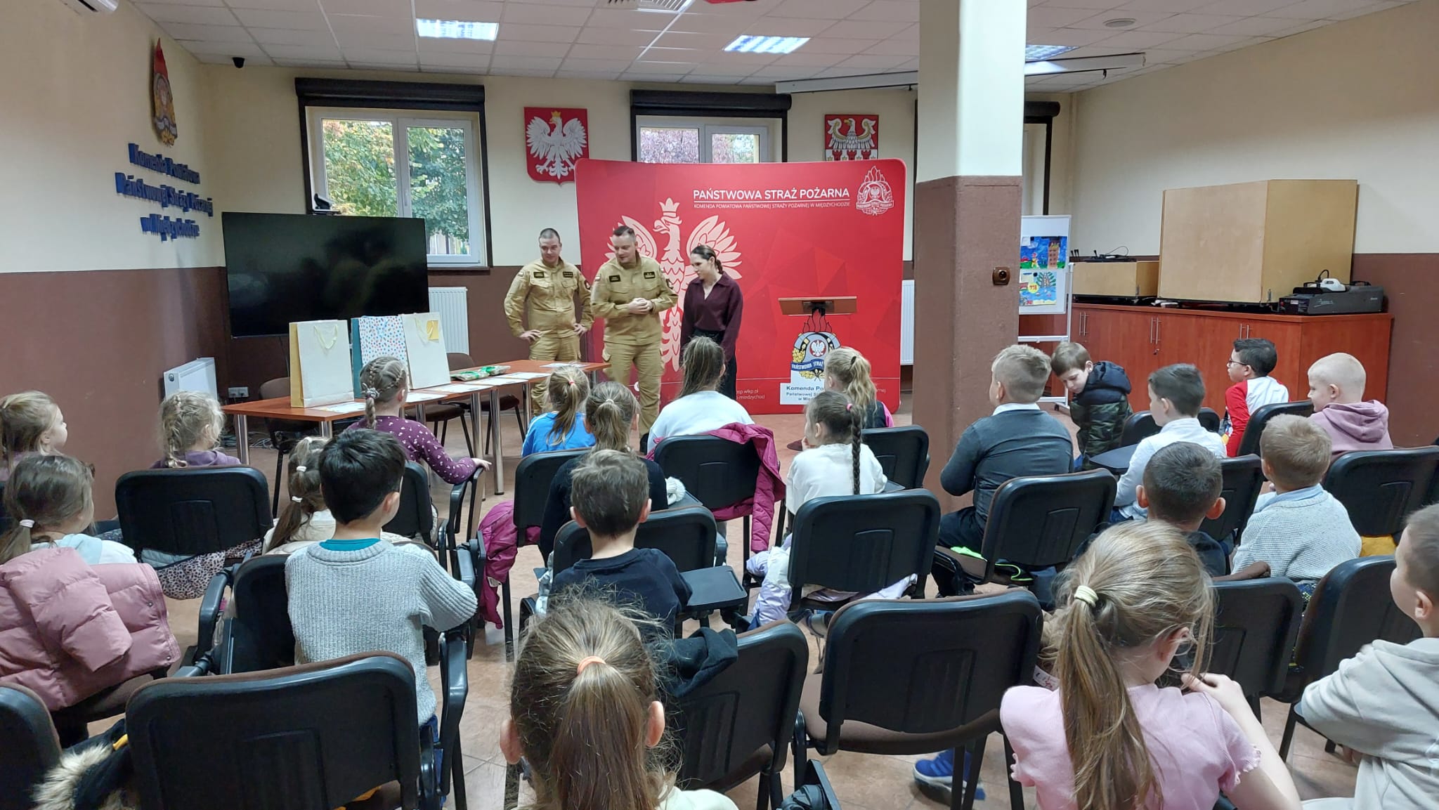 08 listopada 2024 r. w siedzibie Państwowej Straży Pożarnej w Międzychodzie miała miejsce wizyta dzieci wraz z nauczycielami ze Szkoły Podstawowej nr 1 im. Miasta Stołecznego Warszawy w Międzychodzie w ramach wręczenia nagród za udział w konkursie plastycznym „STRAŻAK BOHATER NA CO DZIEŃ”.