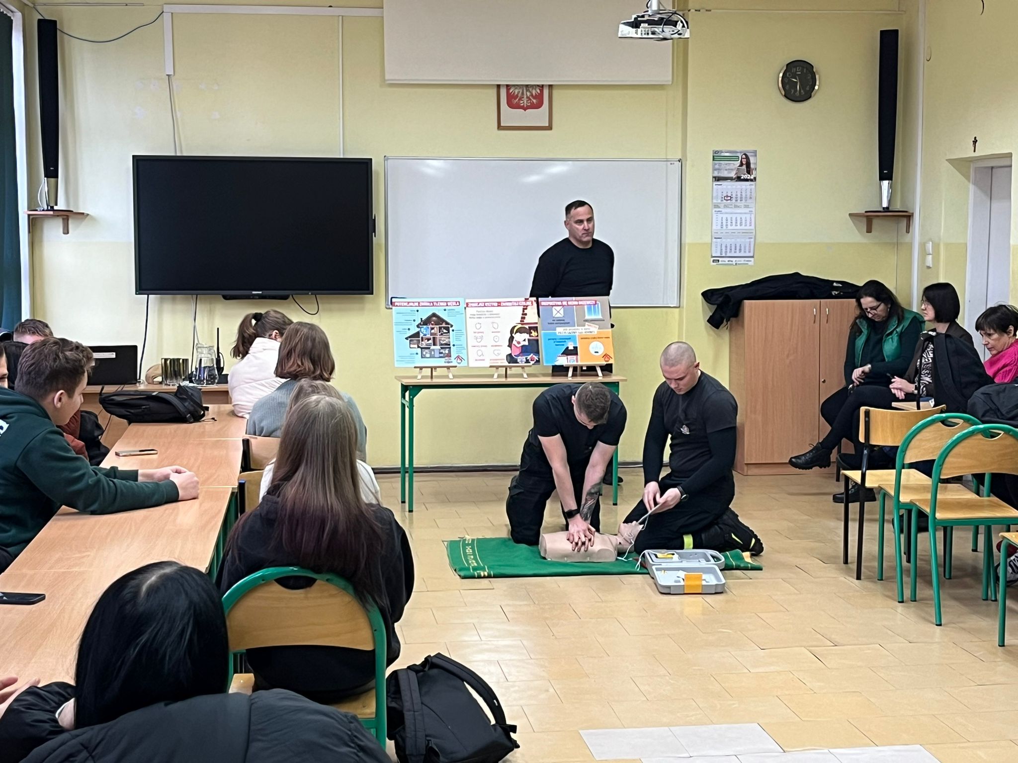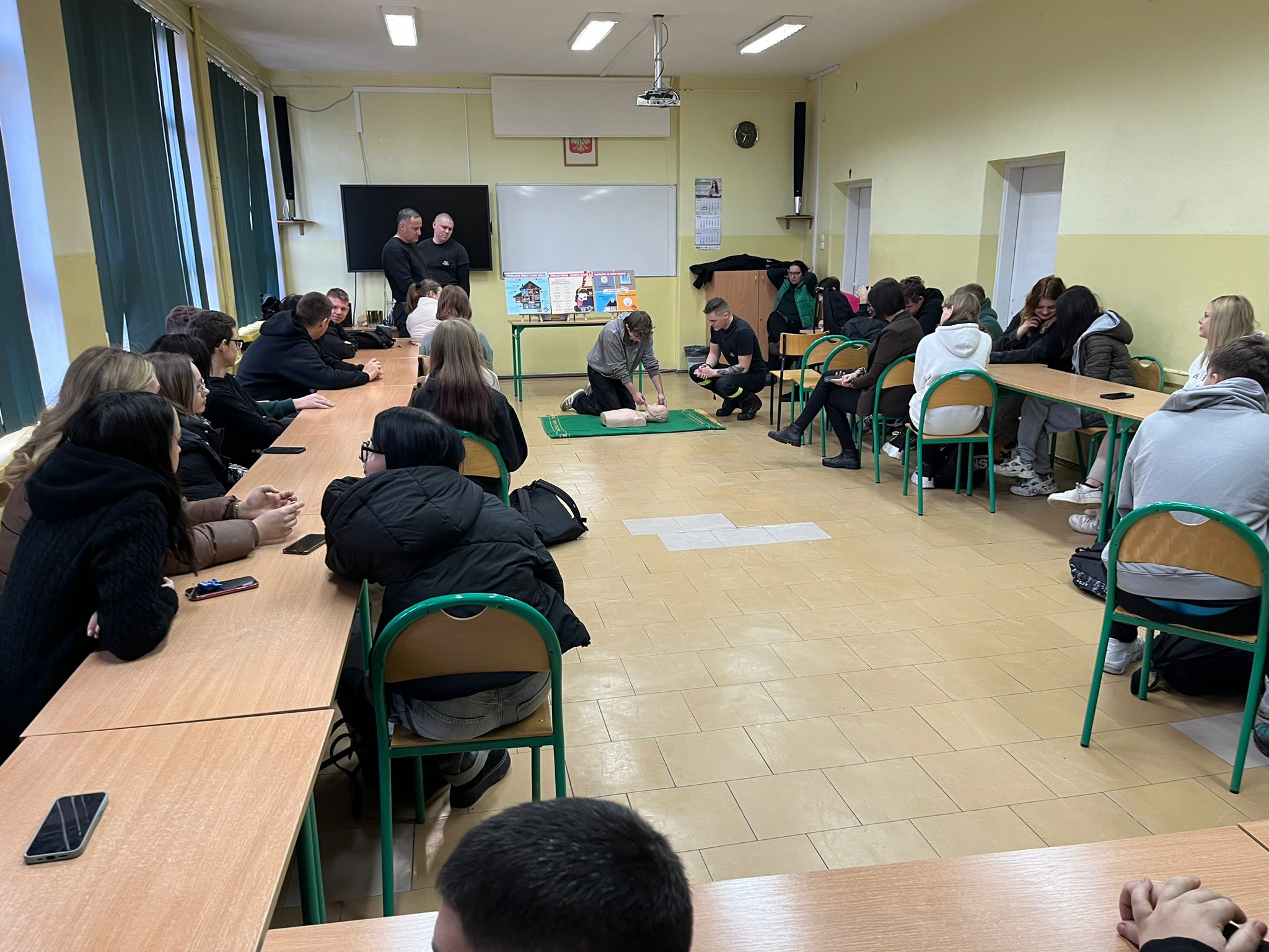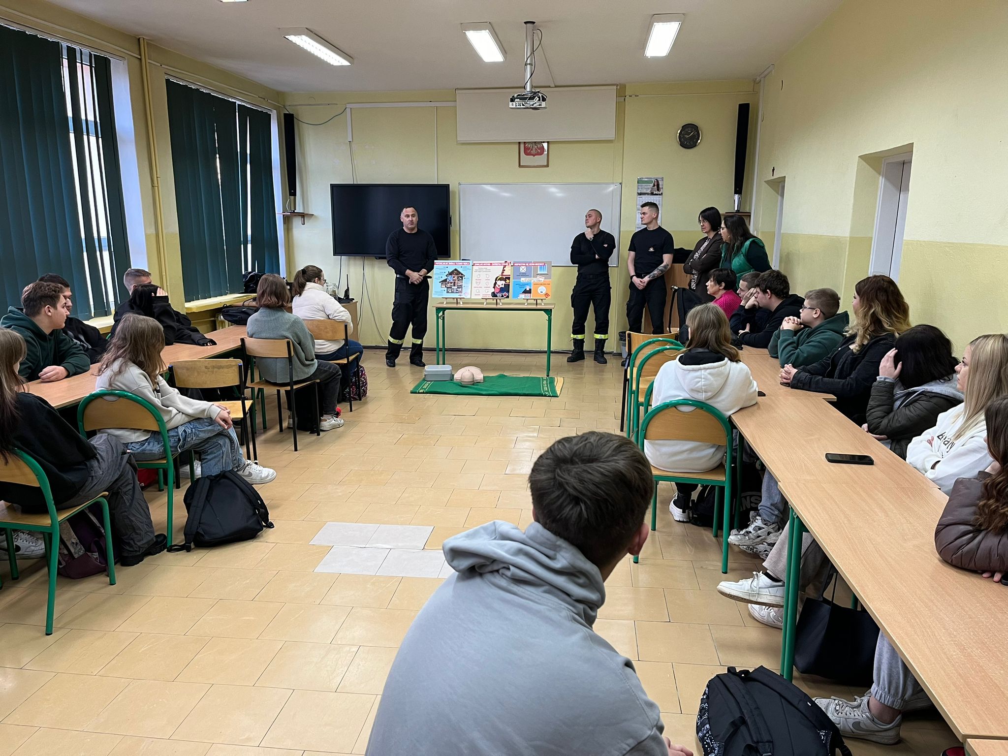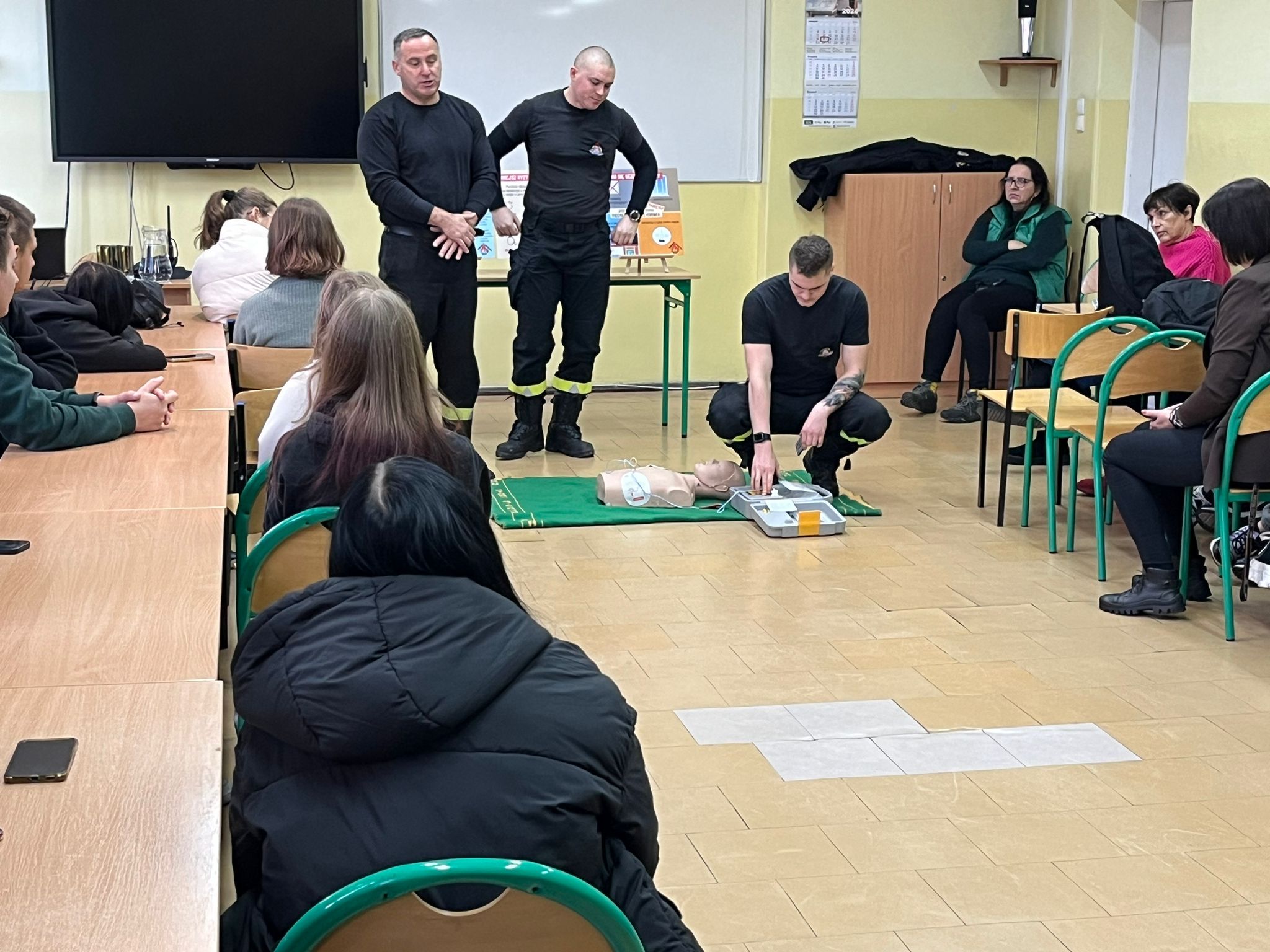 Strażacy omówili zagrożenia związane z sezonem grzewczym, takie jak zatrucie tlenkiem węgla i pożary oraz przypomnieli o zasadach bezpieczeństwa. Dodatkowo, uczniowie zostali przeszkoleni z udzielania pierwszej pomocy, w tym resuscytacji i reagowania na różne sytuacje.
