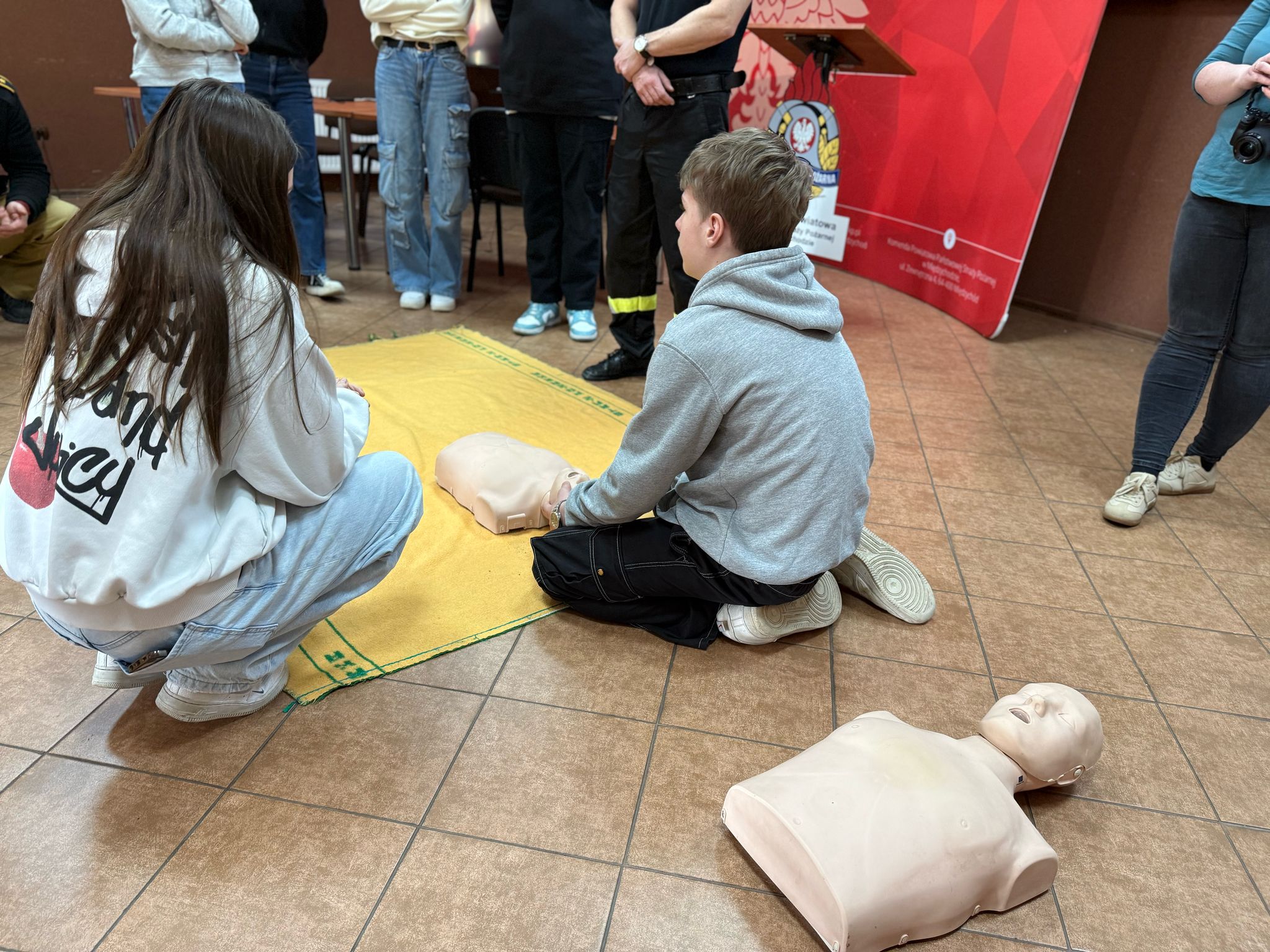 Uczniowie aktywnie uczestniczyli w zajęciach, ucząc się podstaw resuscytacji krążeniowo-oddechowej (RKO), układania w pozycji bezpiecznej oraz zasad tamowania krwotoków. Dzięki tym praktycznym zajęciom młodzież zdobyła cenne umiejętności, które mogą kiedyś uratować życie.