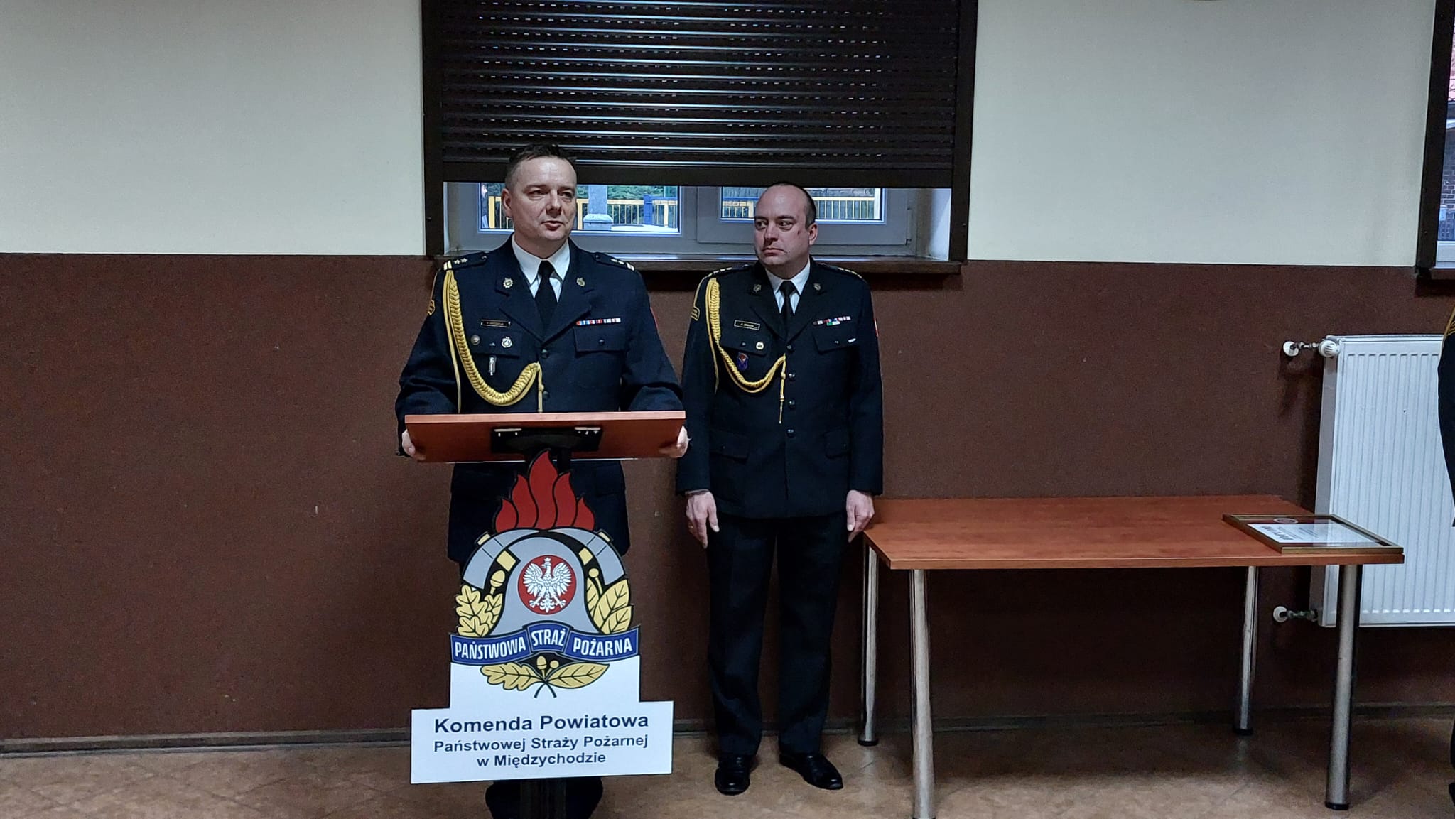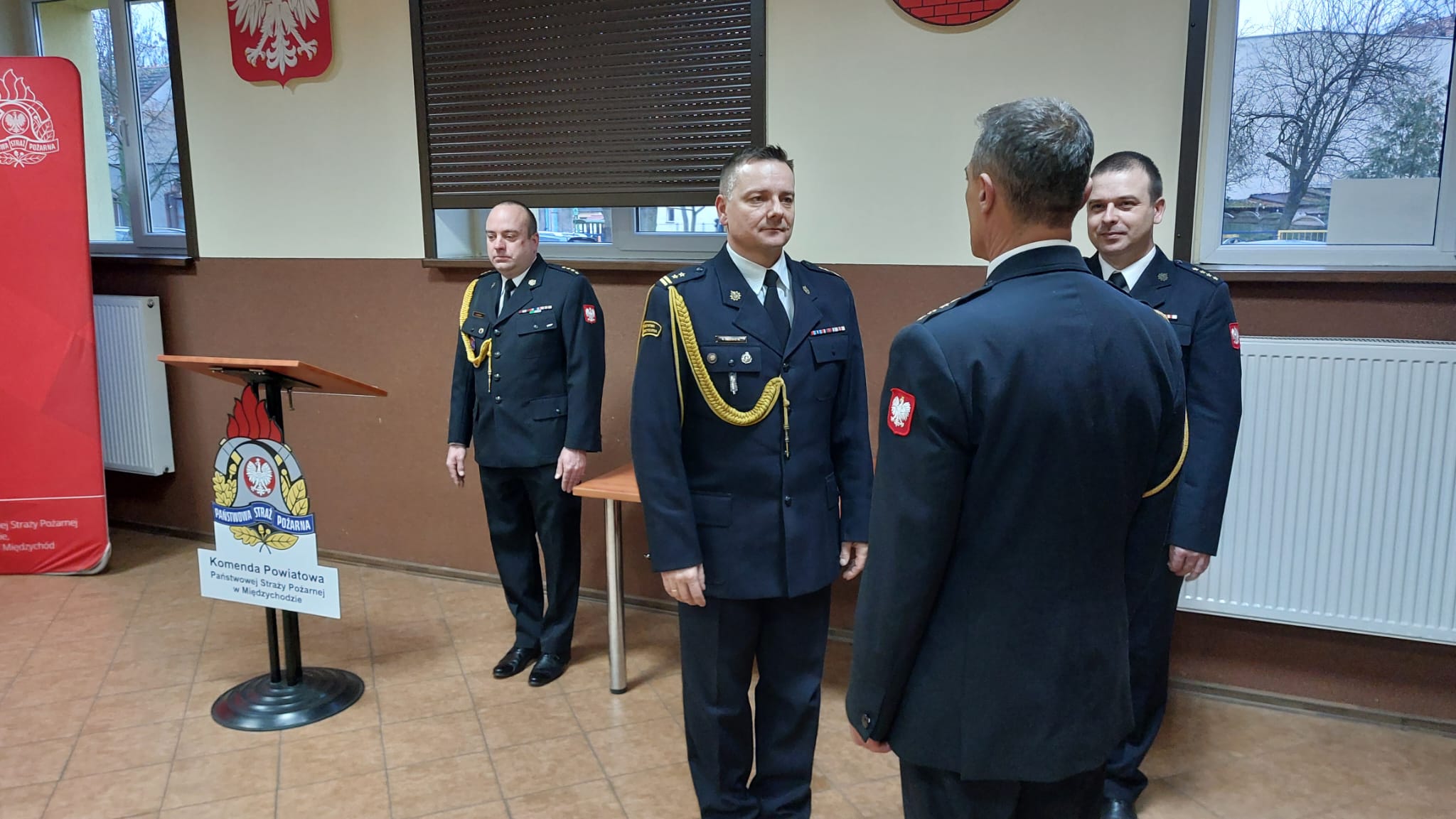 1 grudnia 2025 r. w sali szkoleniowej Komendy Powiatowej Państwowej Straży Pożarnej w Międzychodzie odbyła się uroczysta zbiórka.
