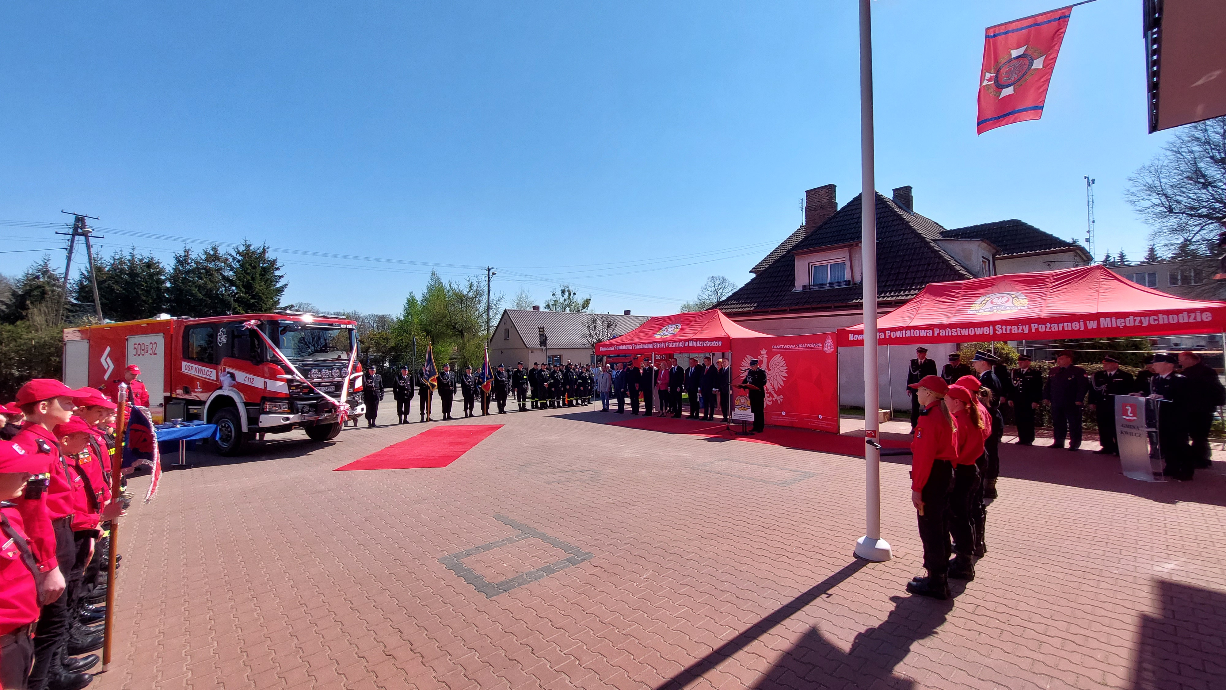 Symbolicznego przekazania kluczyków do nowego, ciężkiego pojazdu pożarniczego dokonał Wojewoda Wielkopolski, Zastępca Wielkopolskiego Komendanta Wojewódzkiego PSP oraz Wójt gminy Kwilcz w asyście Parlamentarzystów i Komendanta Powiatowego Państwowej Straży Pożarnej w Międzychodzie. Nowy pojazd został poświęcony, a następnie głos zabrali zaproszeni goście.