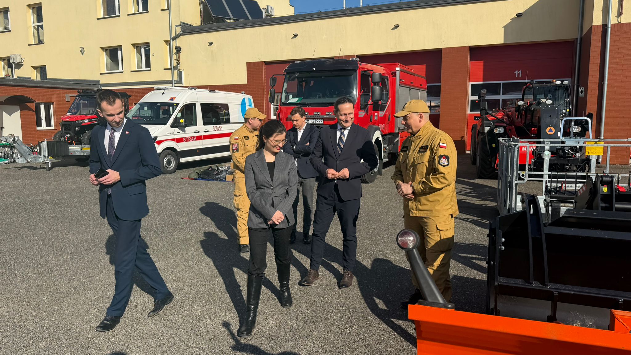 Podczas wizyty, w której uczestniczył także Starosta Międzychodzki Pan Rafał Litke Komendant Powiatowy Państwowej Straży Pożarnej w Międzychodzie bryg. Roman Grzebieta zaprezentował sprzęt pozyskany w roku 2025 ze środków programu ochrony ludność i obrony cywilnej. Spotkanie było także okazją do omówienia planowanych inwestycji i zakupów z programu w roku 2026.