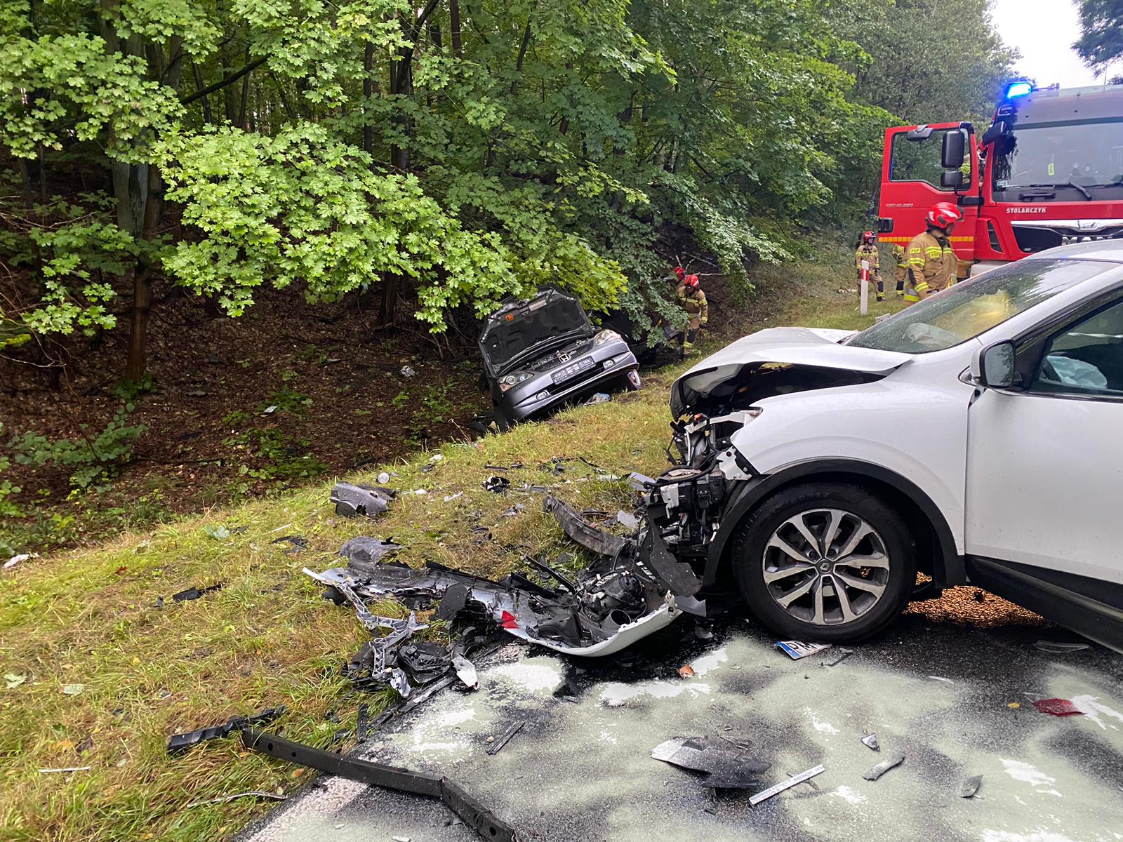 Po dojeździe zastępów JOP zastano dwa pojazdy osobowe, który zderzyły się ze sobą. Działania zastępów JOP polegały na zabezpieczeniu miejsca zdarzenia, rozłączeniu instalacji elektrycznej w pojazdach oraz udzieleniu Kwalifikowanej Pierwszej Pomocy dwóm osobom poszkodowanym.