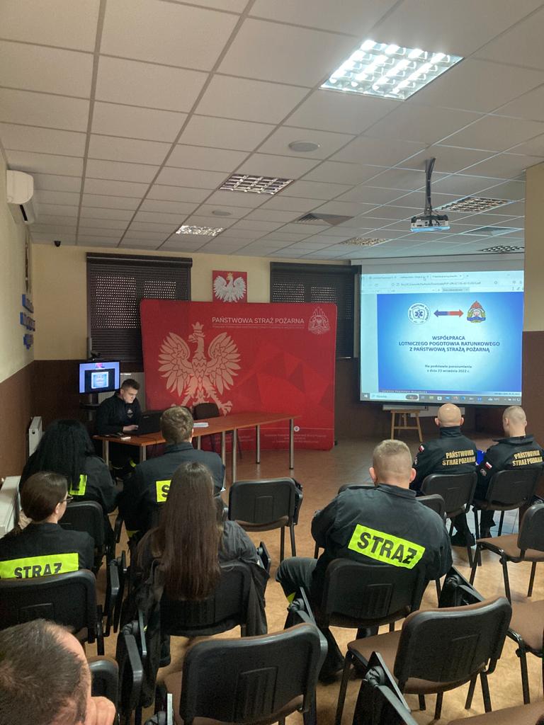 15 lutego 2024 r. w sali szkoleniowej Komendy Powiatowej Państwowej Straży Pożarnej w Międzychodzie odbyło się szkolenie z zakresu współdziałania z Lotniczym Pogotowiem Ratunkowym.