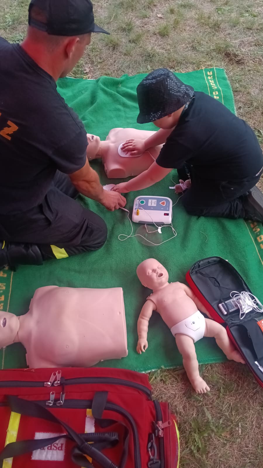 Strażacy z zaangażowaniem opowiadali o bezpieczeństwie pożarowym, udzielali instruktażu z zakresu pierwszej pomocy oraz prezentowali sprzęt wykorzystywany w codziennej służbie.