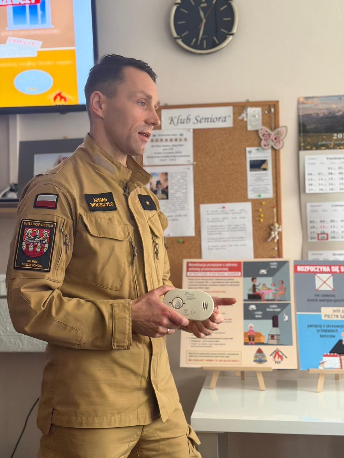25 listopada 2025 roku funkcjonariusze Komendy Powiatowej Państwowej Straży Pożarnej w Międzychodzie przeprowadzili w klubie seniora „ Złoty Wiek” zajęcia edukacyjne poświęcone bezpieczeństwu w życiu codziennym.