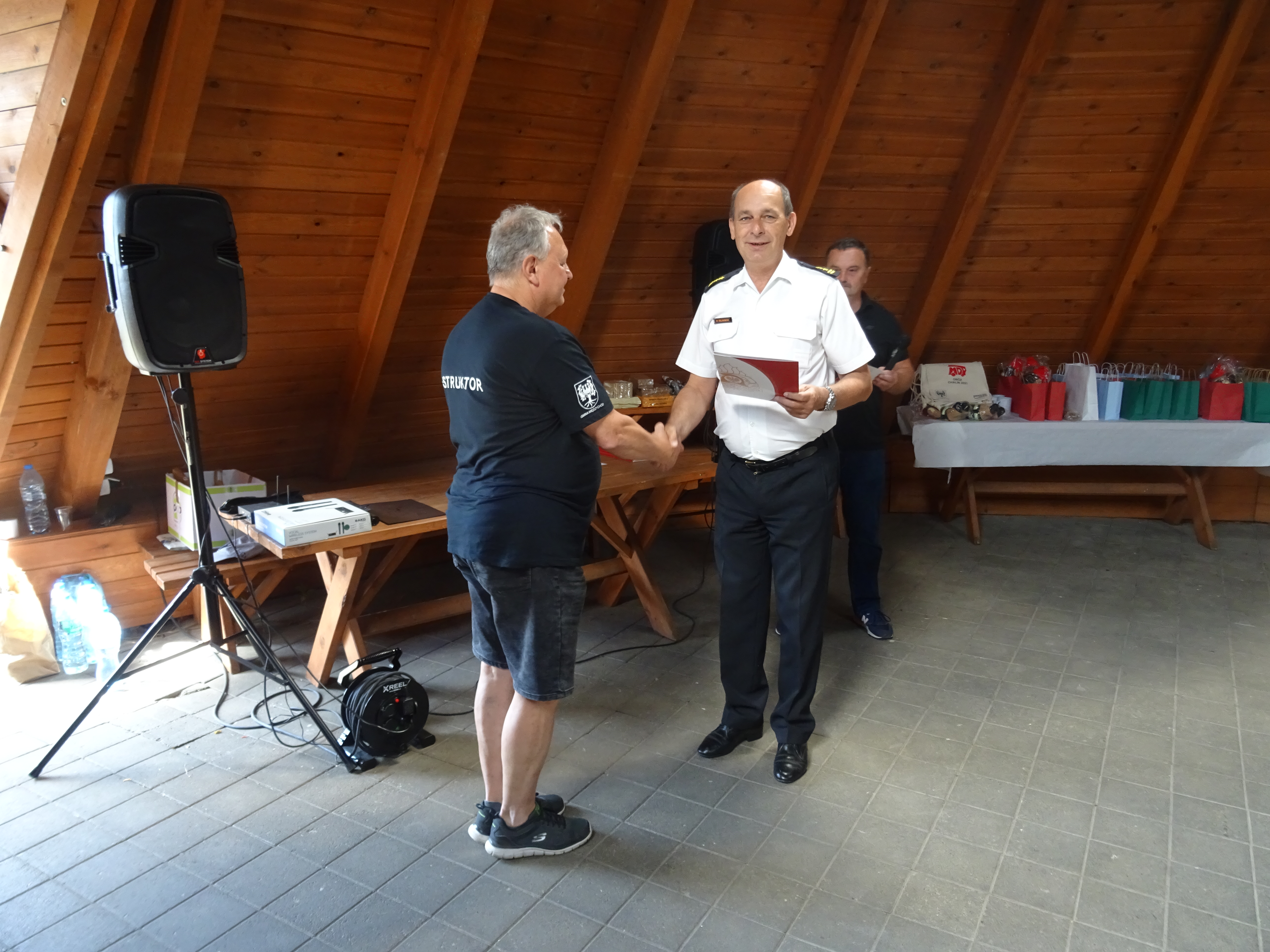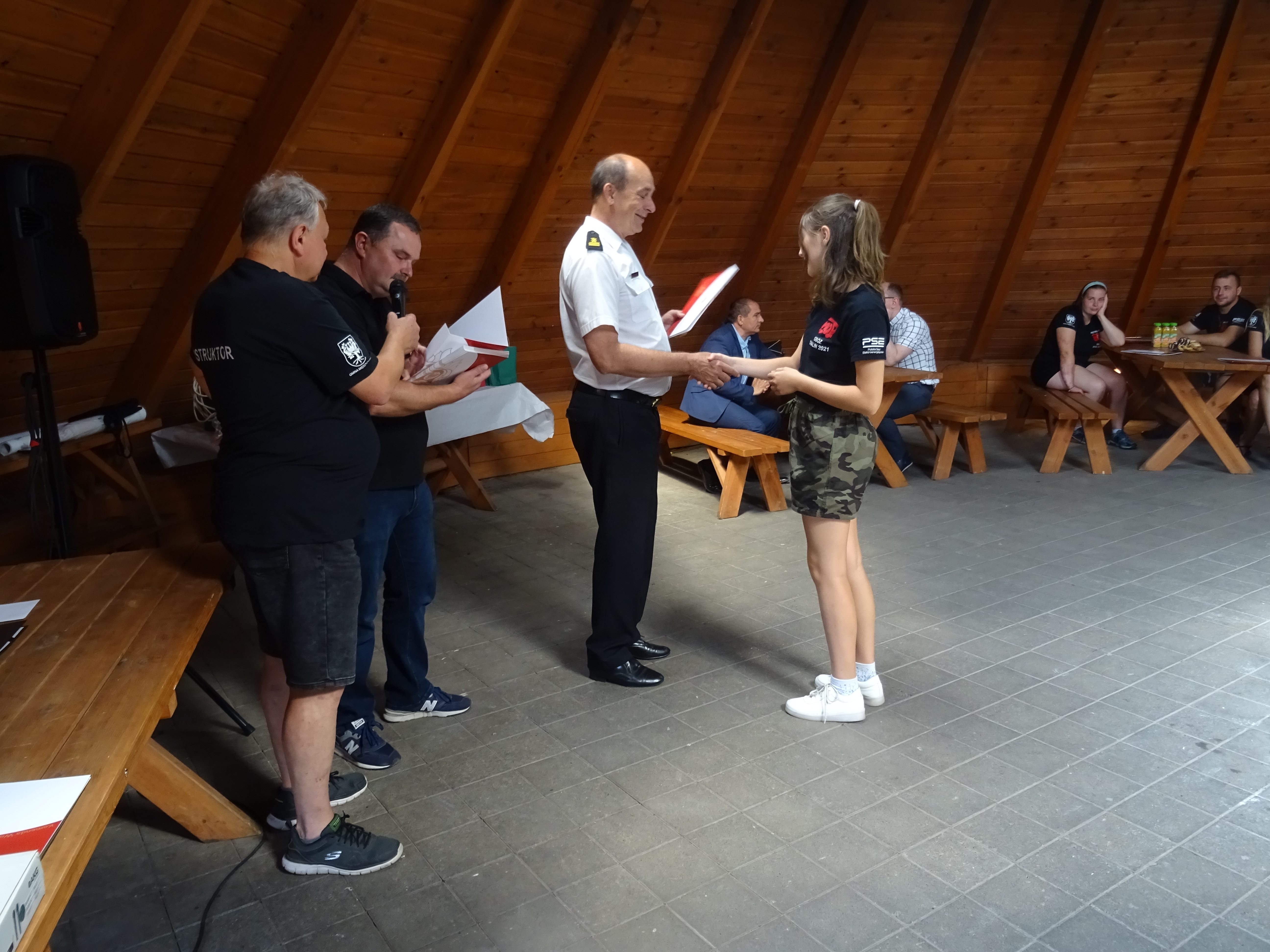 Podczas piątkowego podsumowania Komendant Powiatowy Państwowej Straży Pożarnej w Międzychodzie bryg. Mariusz Trajnowski pozdrowił uczestników obozu, życząc dobrego i bezpiecznego spędzenia drugiego miesiąca wakacji oraz w imieniu Wielkopolskiego Komendanta Wojewódzkiego Państwowej Straży Pożarnej nadbryg. Dariusza Matczaka wręczył obozowiczom pamiątkowe dyplomy.