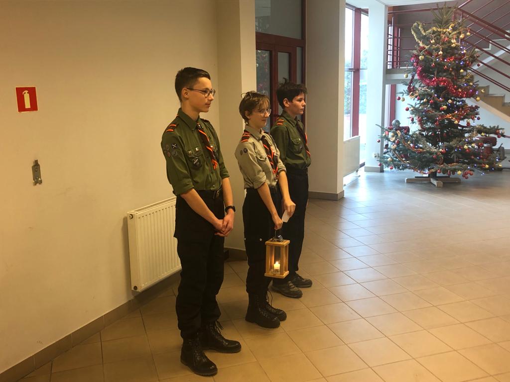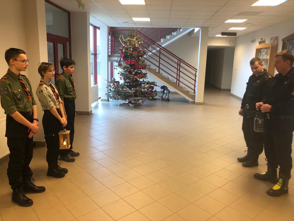 Komendant Powiatowy PSP w imieniu wszystkich funkcjonariuszy i pracowników cywilnych serdecznie podziękował harcerzom zaangażowanym w akcję za przekazanie Światełka i złożył serdeczne życzenia świąteczne i noworoczne.