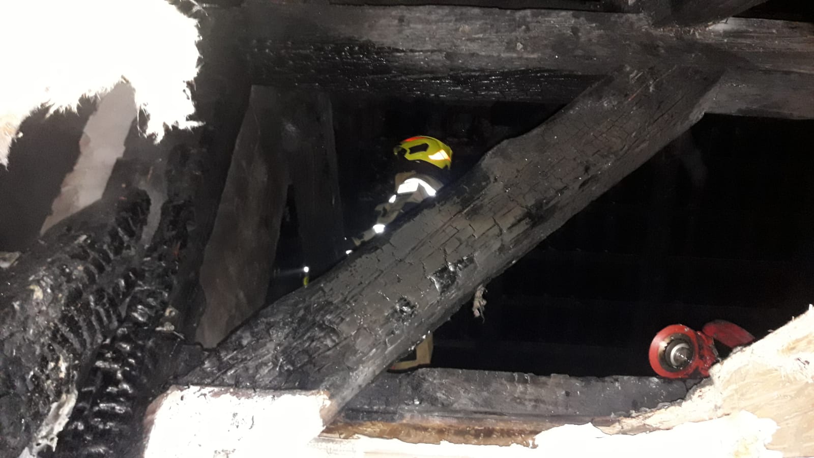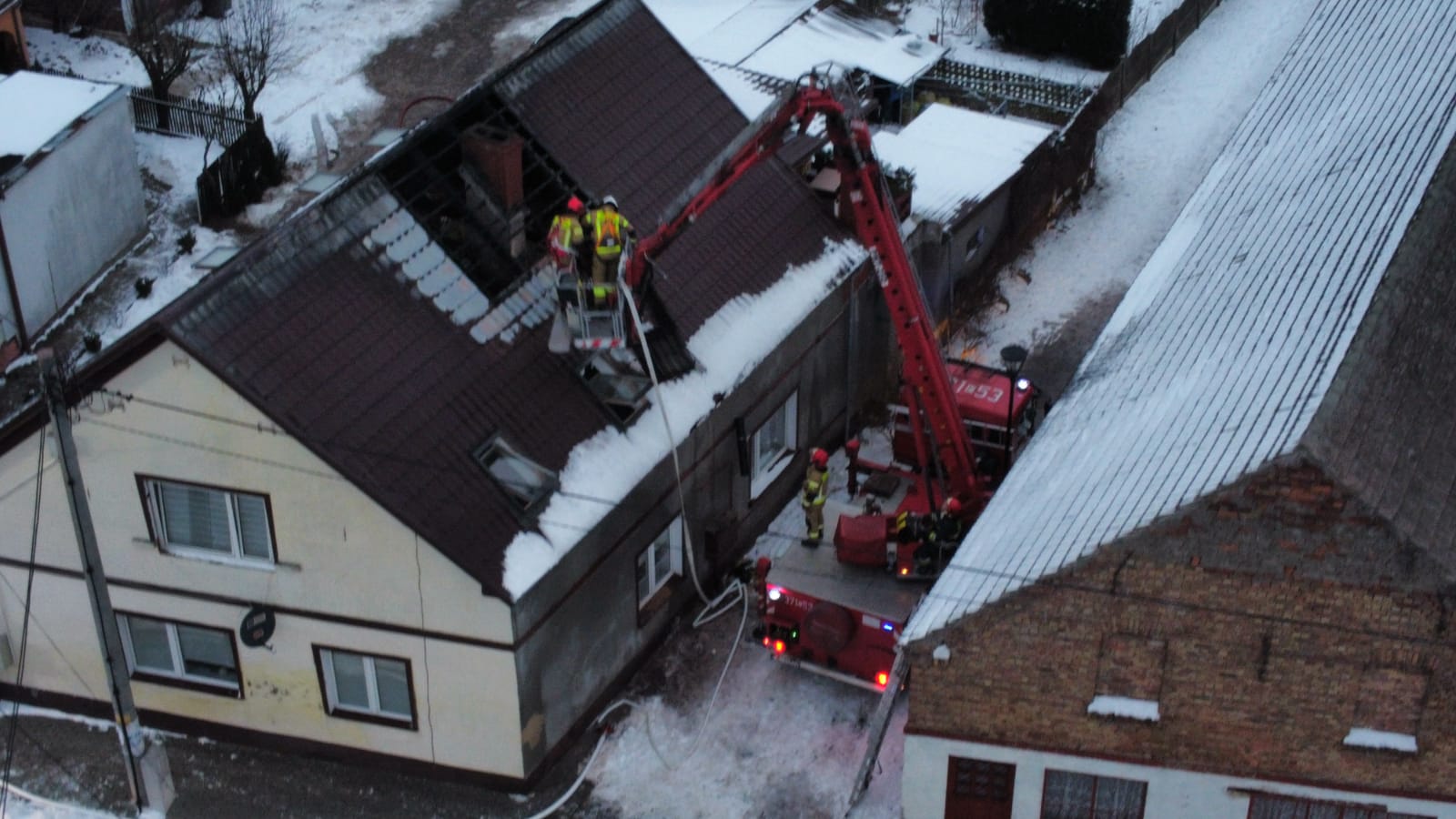 W trakcie działań przeprowadzono ewakuację mienia. Po ugaszeniu pożaru przystąpiono do usuwania elementów spalonych z poddasza.