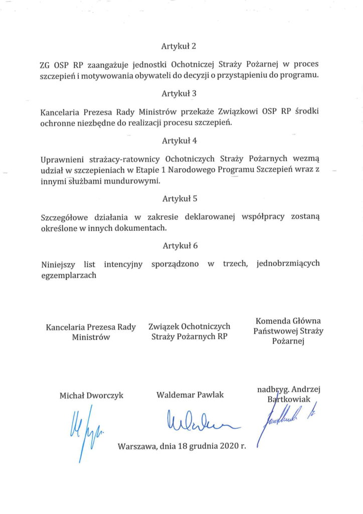 W dniu 18 grudnia 2020 r. został podpisany List Intencyjny w sprawie współpracy dotyczącej realizowania Narodowego Programu Szczepień.