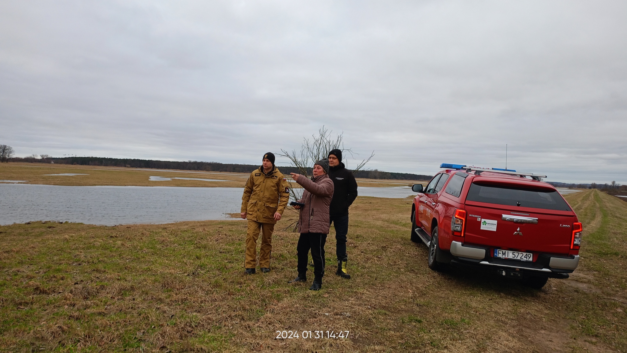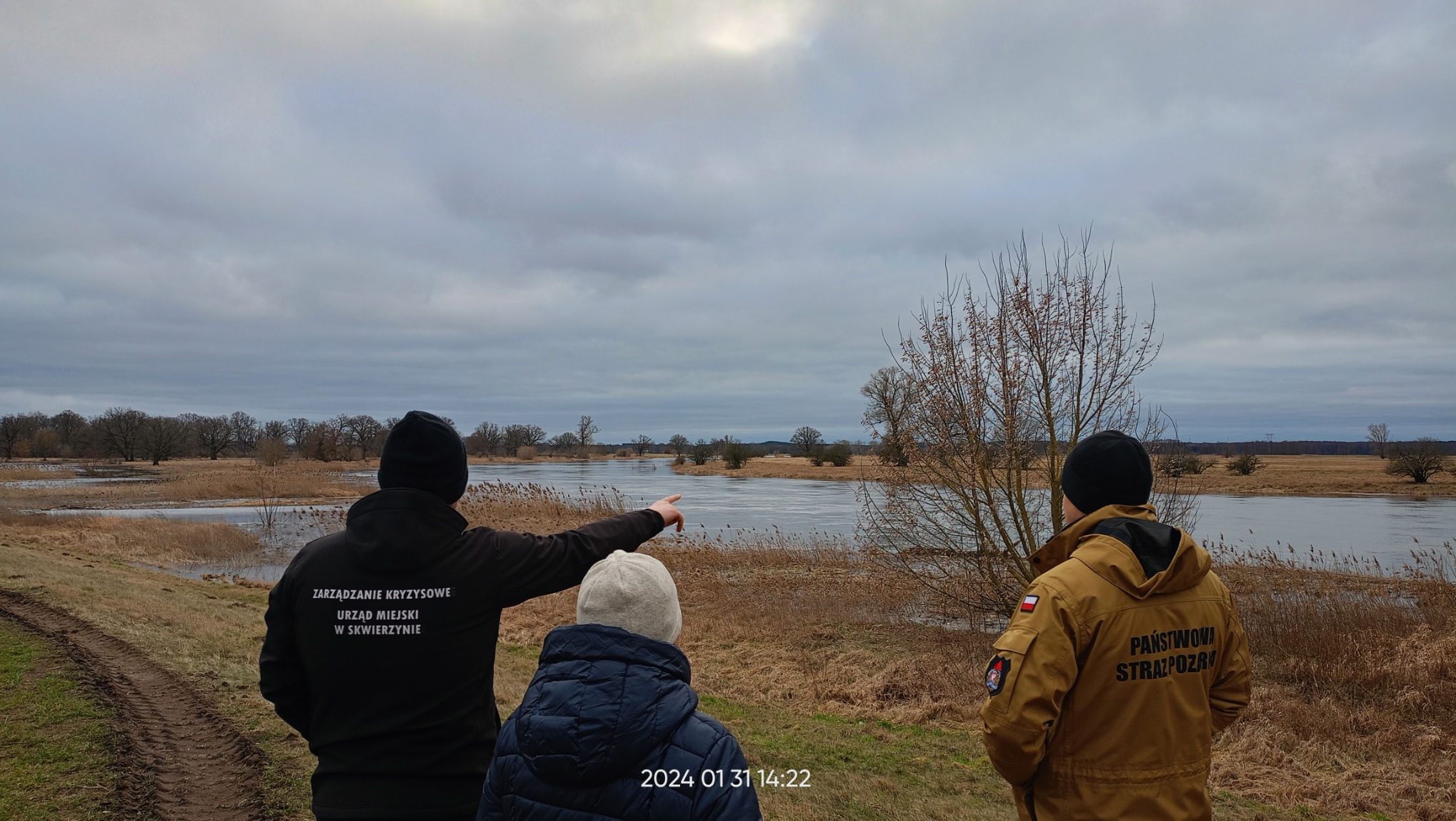 W związku niekorzystnymi warunkami atmosferycznymi zastępca Komendanta Powiatowego PSP w Międzyrzeczu wraz z z-cą Burmistrza Skwierzyny przeprowadzili wizytację wałów przeciwpowodziowych na terenie gminy Skwierzyna. Lustracja przeprowadzona została pod kątem oceny poziomu wody w rzece oraz tworzenia się zatorów lodowych, które mogłyby ewentualnie blokować swobodny przepływ wody, powodując tym samym gwałtowny przybór rzeki.