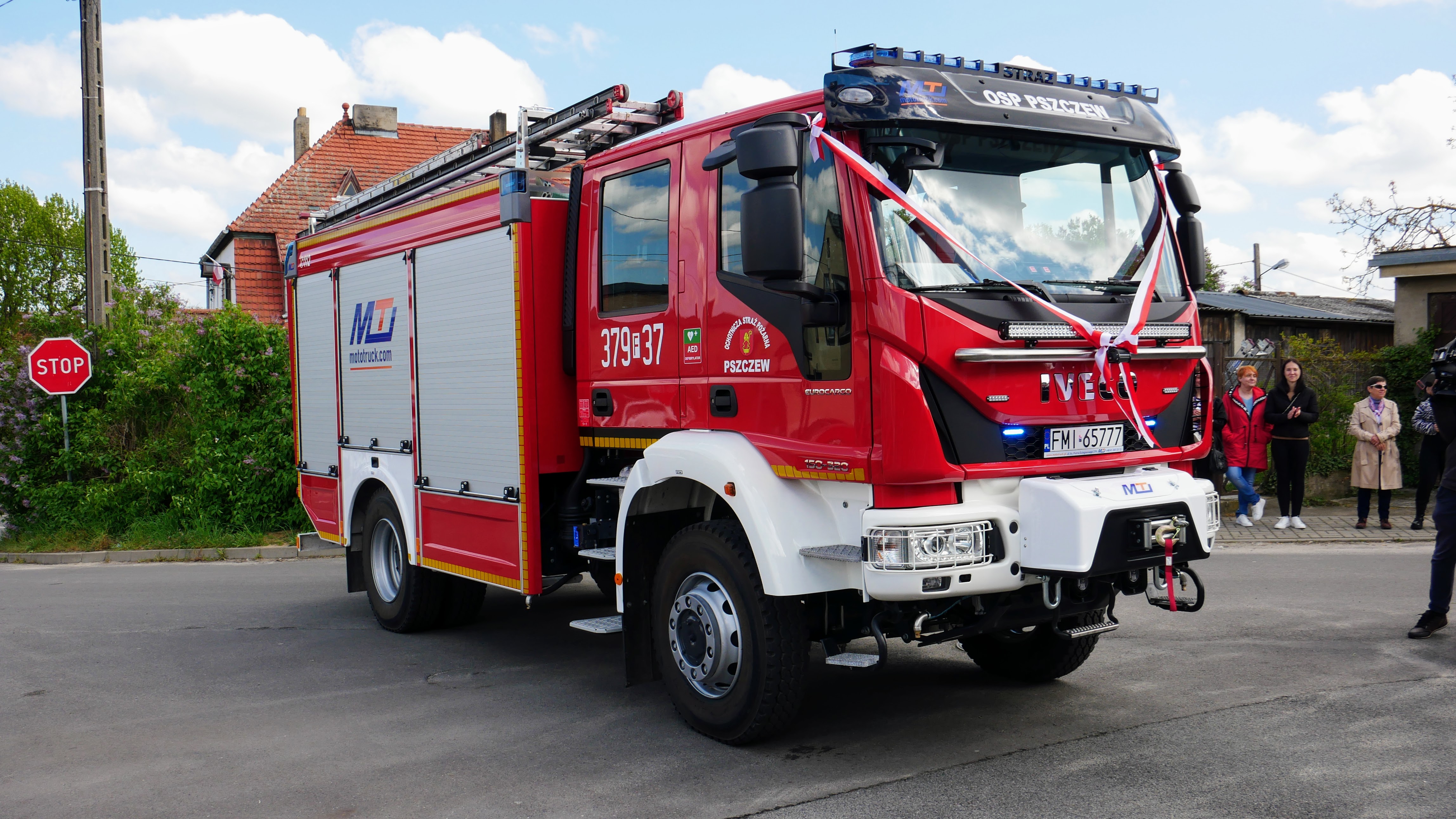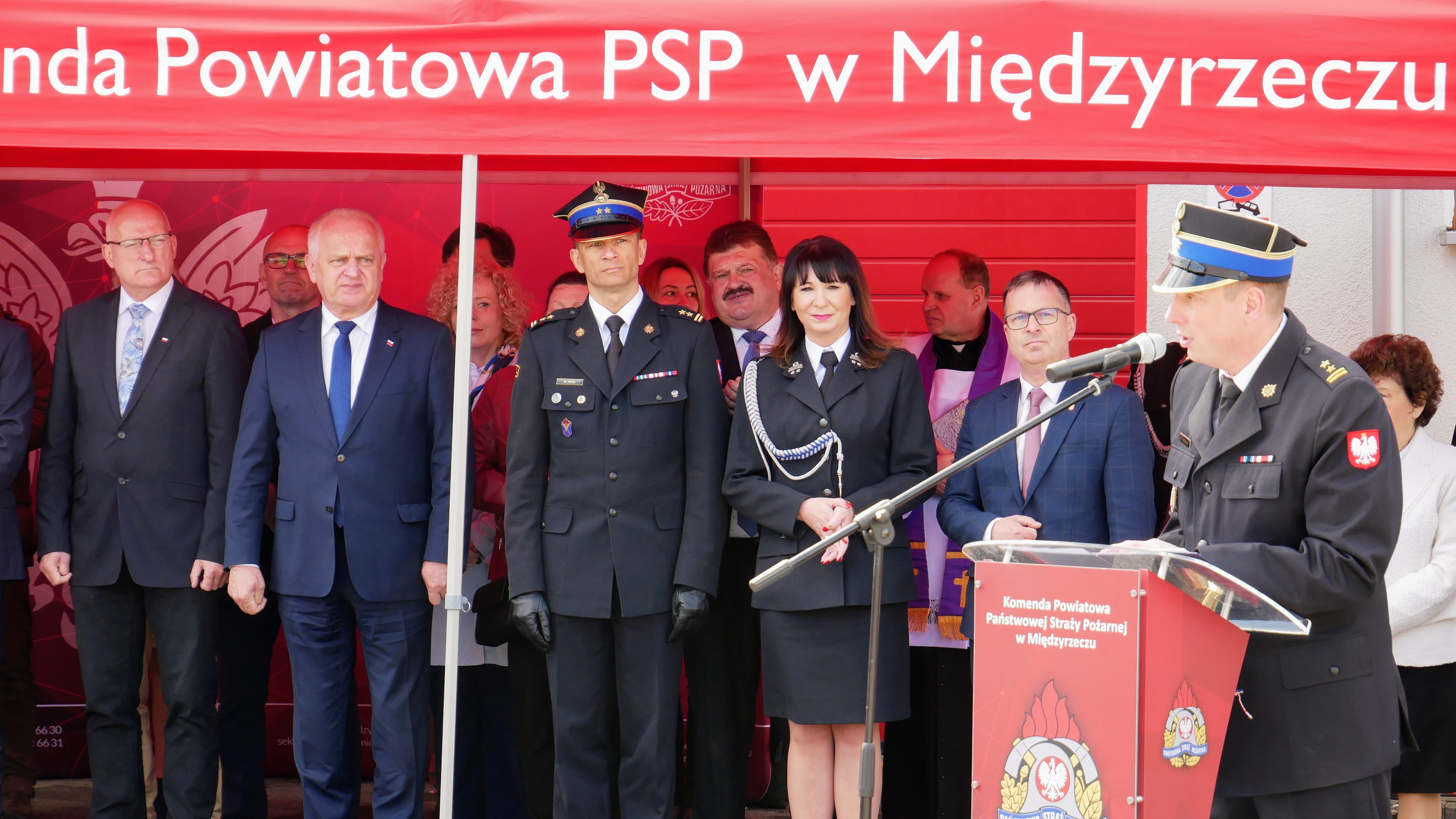 Zastępca Lubuskiego Komendanta Wojewódzkiego bryg. Maciej Iwko wraz z Wojewodą Lubuskim Władysławem Dajczakiem, Posłem na Sejm RP Jackiem Kurzepą, Prezesem Zarządu Wojewódzkiego Funduszu Ochrony Środowiska i Gospodarki Wodnej w Zielonej Górze Mariuszem Herbutem oraz Wójtem Gminy Pszczew Józefem Piotrowskim, wręczył akt przekazania pojazdu Wiceprezesowi OSP Pszczew dh Danielowi Suszczyńskiemu.