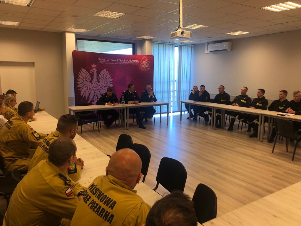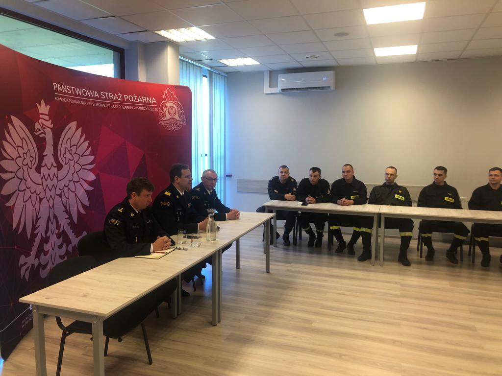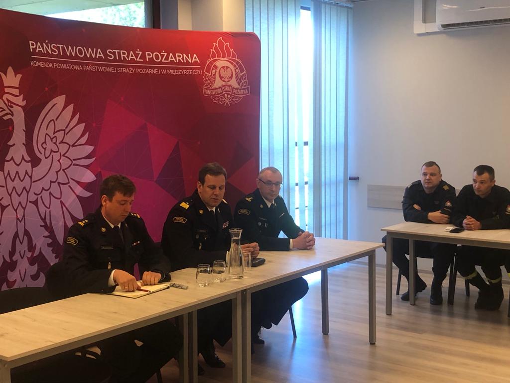 W dniu 31 maja 2023 r. Lubuski Komendant Wojewódzki PSP nadbrygadier Patryk Maruszak spotkał się z funkcjonariuszami na spotkaniu roboczym w siedzibie Komendy Powiatowej Państwowej Straży Pożarnej w Międzyrzeczu. W obecności st. bryg. Janusza Drozdy - zastępcy Lubuskiego Komendanta Wojewódzkiego PSP oraz bryg. Marka Koperwasa – Komendanta Powiatowego PSP w Międzyrzeczu omówiono najważniejsze, bieżące sprawy międzyrzeckich strażaków. Pan generał odpowiadając na pytania uczestników spotkania przedstawił z perspektywy szefa lubuskich strażaków najważniejsze zadania do realizacji na najbliższe miesiące.