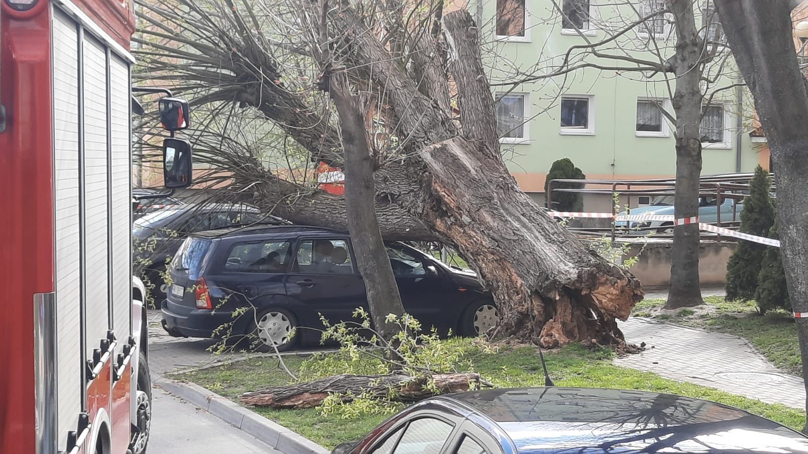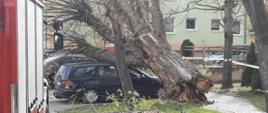 Spróchniałe drzewo zniszczyło pojazdy na parkingu w Międzyrzeczu