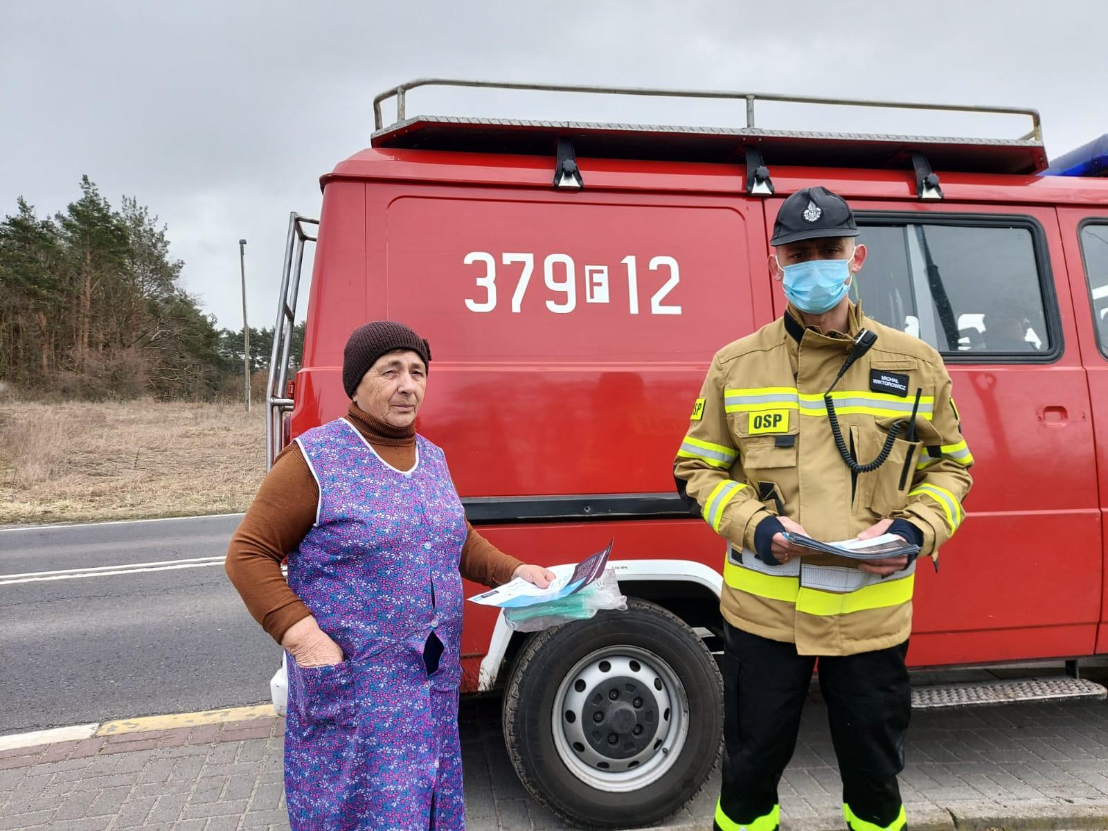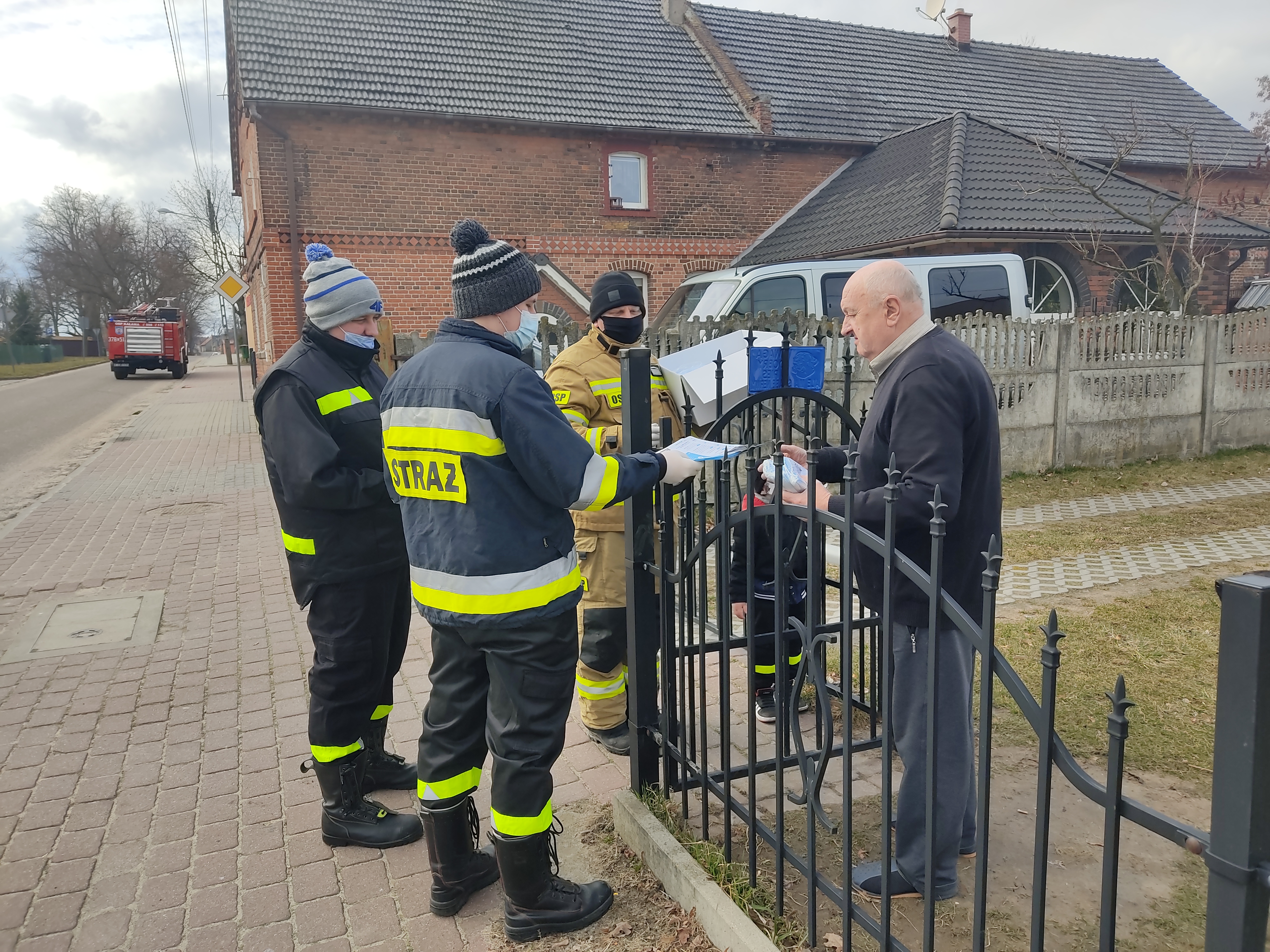 STRAŻACY Z CAŁEGO POWIATU ROZWOŻĄ ULOTKI DOTYCZĄCE SZCZEPIENIA PRZECIWKO COVID-19