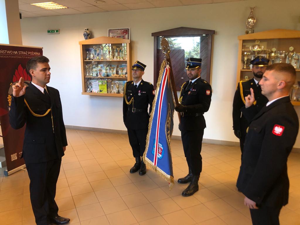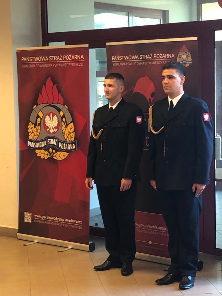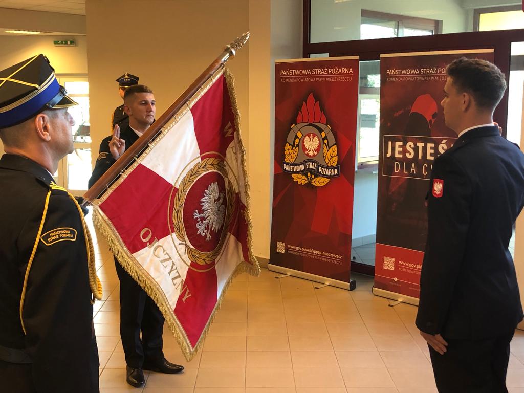 15 września 2023 roku w siedzibie Komendy Powiatowej PSP w Międzyrzeczu odbył się uroczysty apel z okazji ślubowania, które złożyli strażacy przyjęci do służby przygotowawczej w Państwowej Straży Pożarnej: str. Adrian Józefiak i str. Samuel Pindera. Ślubowanie przyjął z-ca Komendanta Powiatowego PSP w Międzyrzeczu mł. bryg. Szymon Winnicki.
