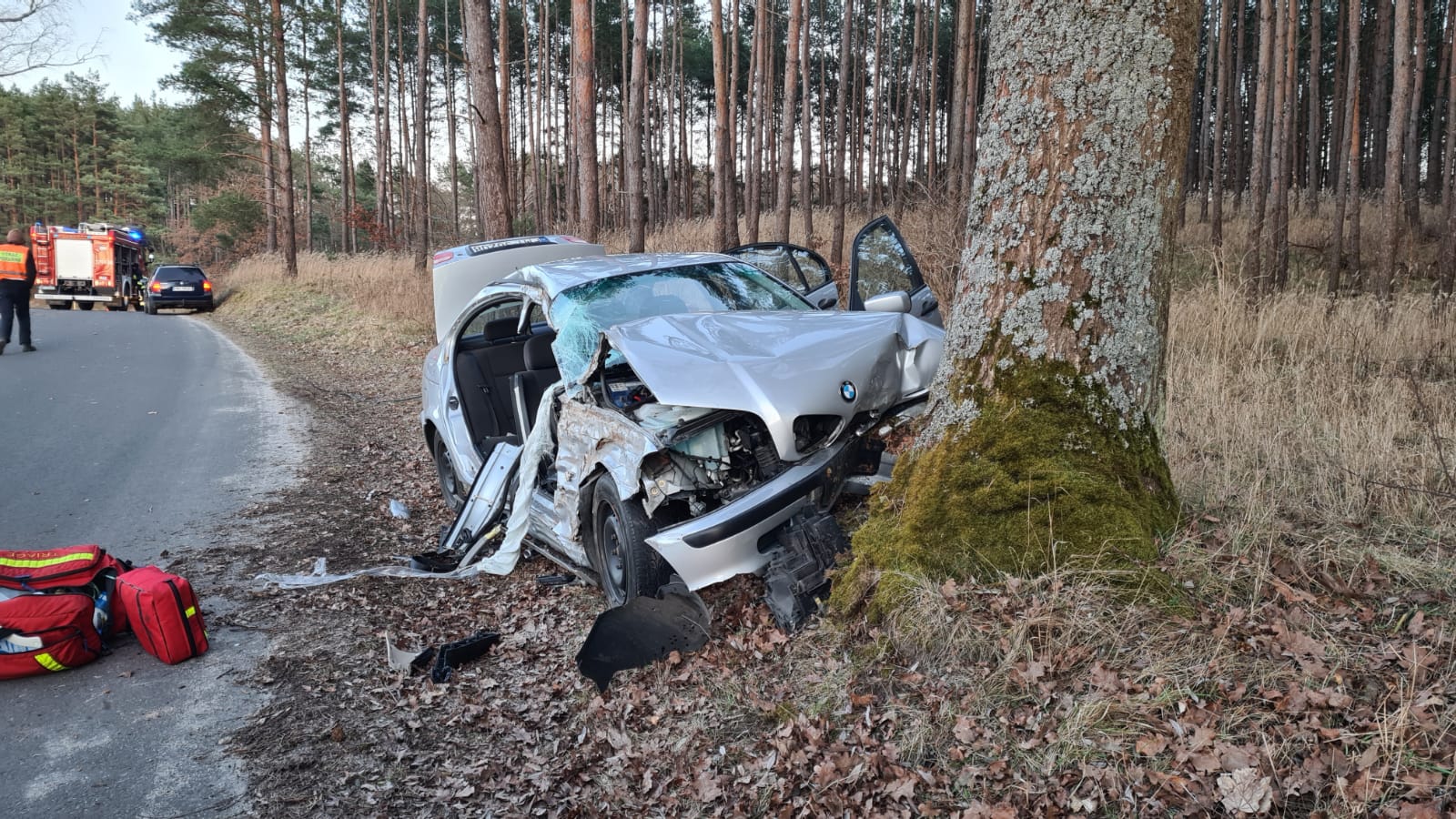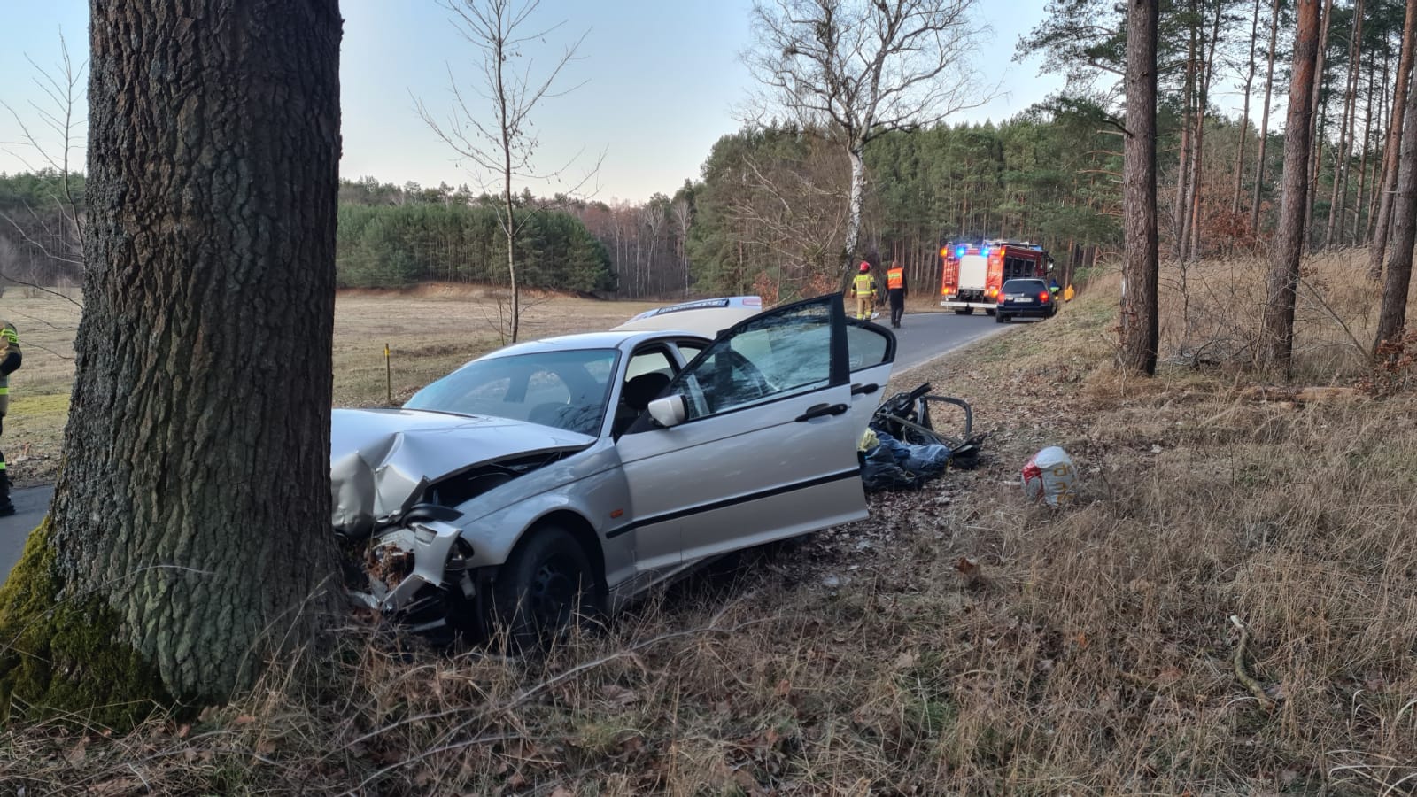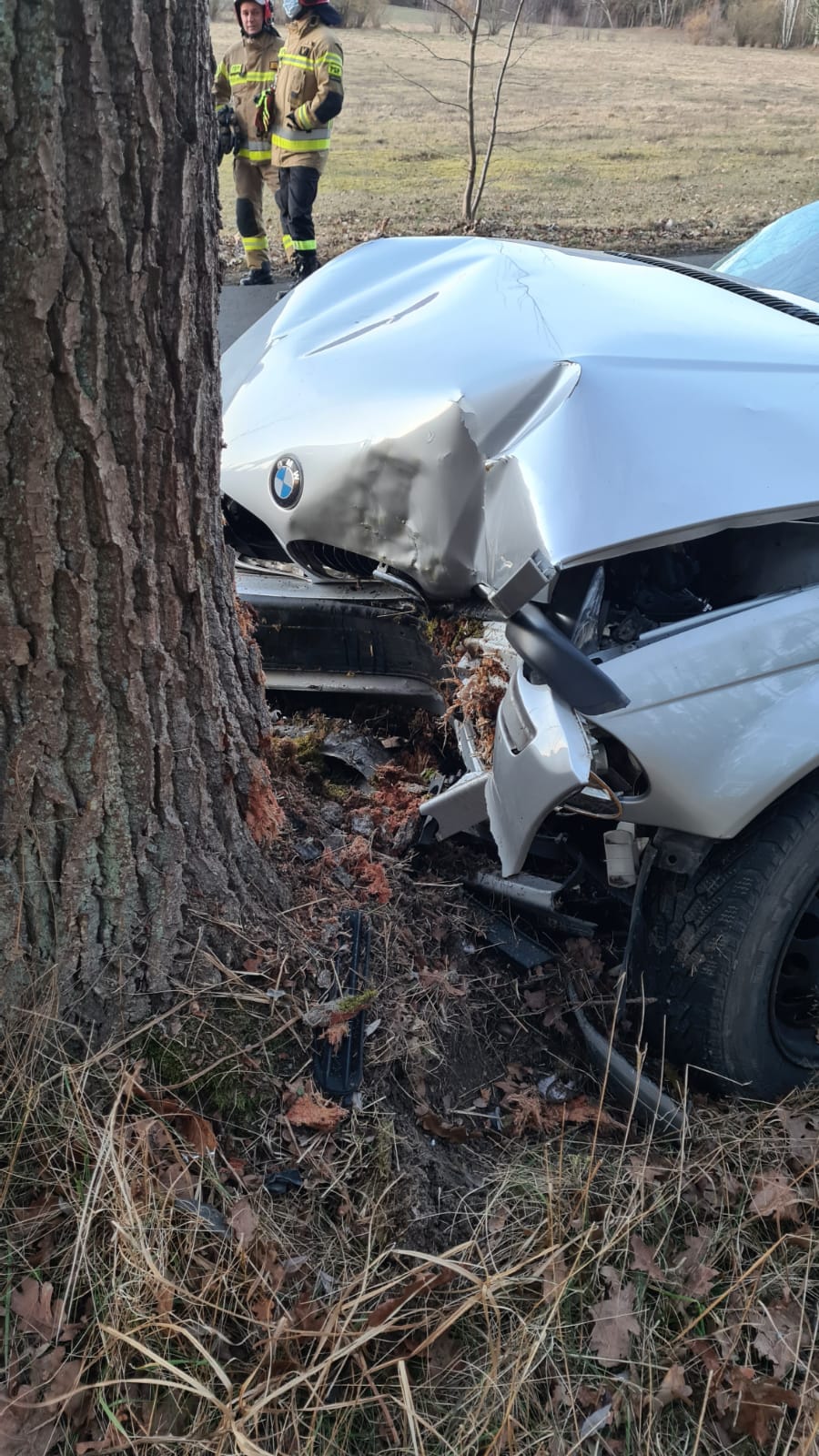W godzinach popołudniowych 5 marca br. doszło do niebezpiecznego zdarzenia na drodze pomiędzy Pszczewem i Silną gm. Pszczew. Pojazd osobowy marki BMW uderzył w drzewo. Pojazdem podróżowało dwoje pasażerów, z których jedna - 89 letnia pasażerka pojazdu została ranna. Po dojeździe jednostek ochrony przeciwpożarowej stwierdzono, że kierowca samodzielnie ewakuował się z rozbitego pojazdu natomiast starsza kobieta, która była przytomna została niestety uwięziona w pojeździe. Ratownicy przystąpili do działań stabilizując uszkodzony pojazd, zakręcając zawór w butli z gazem oraz odłączając akumulator. Następnie za pomocą sprzętu hydraulicznego wykonali technikę otwarcia boku pojazdu co pozwoliło na uwolnienie kobiety i przy pomocy deski ortopedycznej ewakuowano ją do karetki pogotowia.