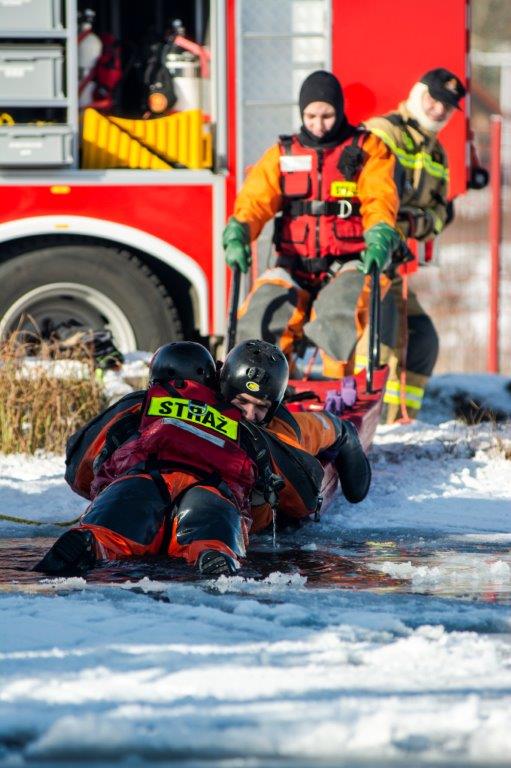 Zimowe szkolenie. Techniki podejmowania poszkodowanego z przerębla