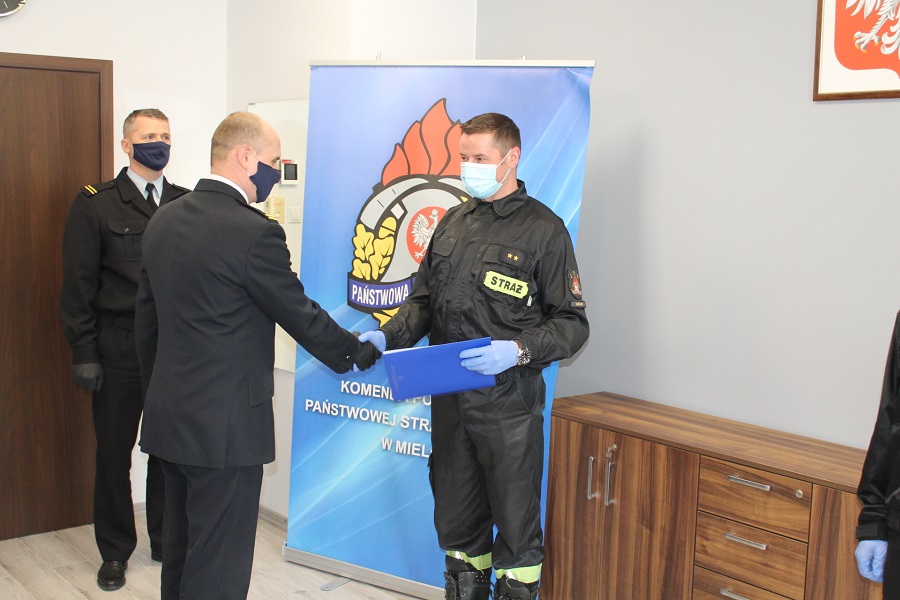 W dniu 25 marca 2021 r. komendant powiatowy Państwowej Straży Pożarnej w Mielcu - mł. bryg. Łukasz Kapinos awansował na wyższe stanowiska służbowe ośmiu funkcjonariuszy komendy powiatowej. Decyzje o mianowaniu na wyższe stanowiska służbowe w warunkach reżimu sanitarnego, w sali odpraw komendy powiatowej wręczył komendant powiatowy siedmiu funkcjonariuszom z jednostki ratowniczo gaśniczej nr 1. Na świetlicy jednostki ratowniczo-gaśniczej nr 2 decyzję o mianowaniu na wyższe stanowisko funkcjonariuszowi z tej jednostki wręczył w imieniu komendanta - zastępca komendanta powiatowego - bryg. Marek Gawlak.