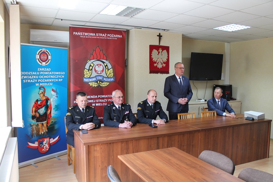 W budynku komendy powiatowej Państwowej Straży Pożarnej w Mielcu podpisano umowy z przedstawicielami jednostek Ochotniczych Straży Pożarnych z powiatu mieleckiego. W wydarzeniu uczestniczyli m.in.: poseł na sejm Rzeczypospolitej Polskiej i członek parlamentarnego zespołu strażaków Fryderyk Kapinos, zastępca prezesa zarządu WFOŚiGW w Rzeszowie Bogusław Kida, komendant powiatowy Państwowej Straży Pożarnej w Mielcu mł.bryg. Łukasz Kapinos, zastępca komendanta powiatowego Państwowej Straży Pożarnej bryg Marek Gawlak, prezes zarządu powiatowego ZOSP RP Franciszek Augustyn oraz prezesi jednostek OSP.