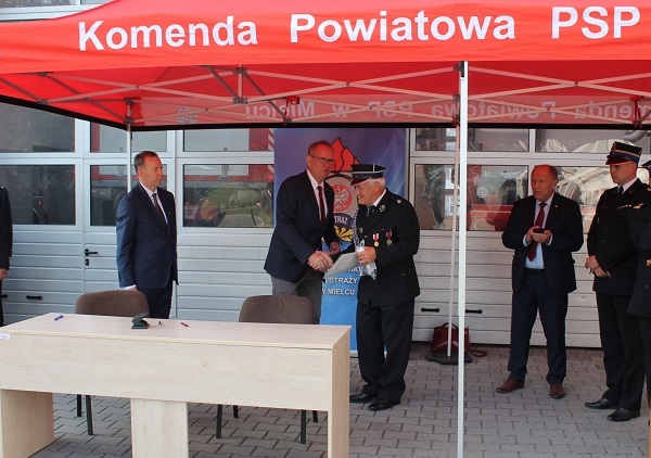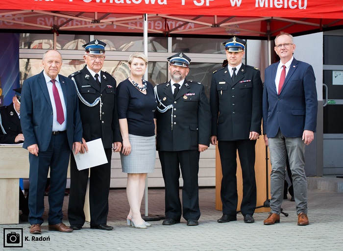 Na spotkaniu, które odbyło się na placu komendy powiatowej Państwowej Straży Pożarnej w Mielcu obecni byli również.: poseł na sejm Rzeczypospolitej Polskiej i przewodniczący parlamentarnego zespołu strażaków Zbigniew Chmielowiec, poseł na sejm Rzeczypospolitej Polskiej i członek parlamentarnego zespołu strażaków Fryderyk Kapinos, zastępca prezesa zarządu Wojewódzkiego Funduszu Ochrony Środowiska i Gospodarki Wodnej Bogusław Kida, komendant powiatowy Państwowej Straży Pożarnej w Mielcu mł.bryg. Łukasz Kapinos, zastępca komendanta powiatowego bryg. Marek Gawlak, burmistrz Przecławia Renata Siembab oraz kierownictwo 27 jednostek Ochotniczych Straży Pożarnych z terenu powiatu mieleckiego.