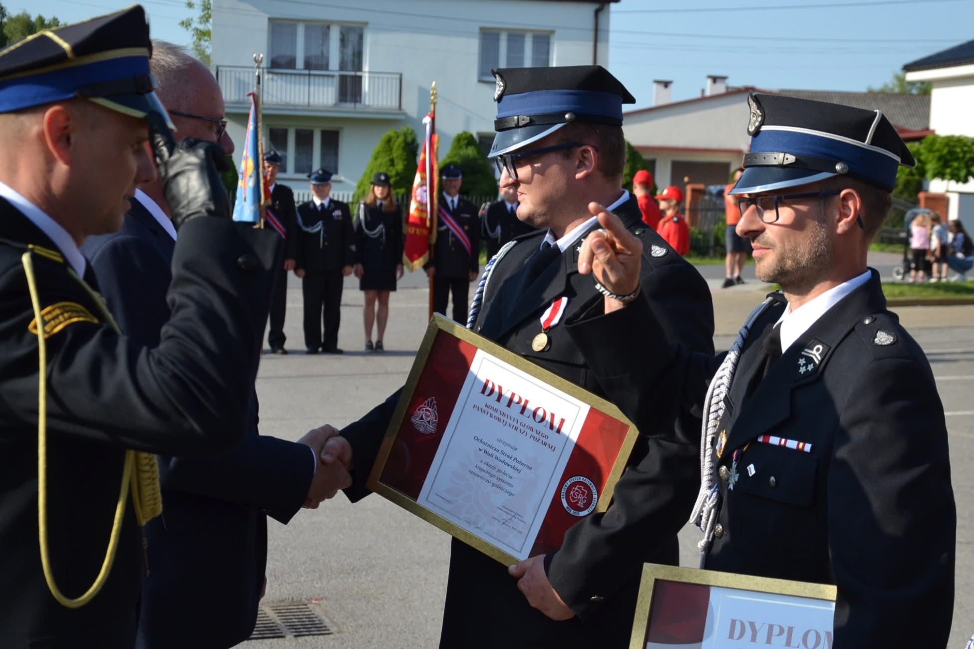 Obchody były również okazją do uhonorowania wyróżniających się druhów. Wręczono odznaczenia „Za Zasługi dla Pożarnictwa”, będące wyrazem uznania dla ich długoletniej, ofiarnej służby na rzecz ochrony przeciwpożarowej i bezpieczeństwa mieszkańców gminy.