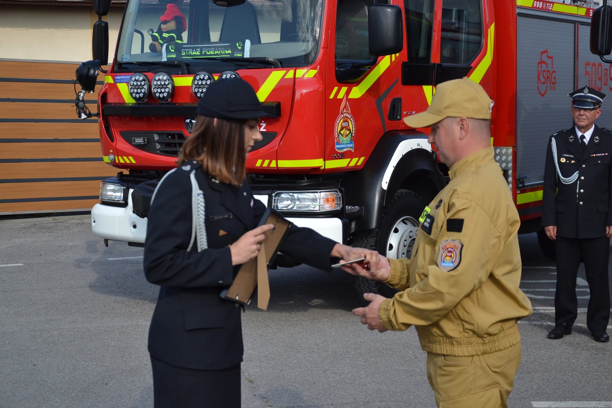 Podczas uroczystości miało miejsce uroczyste przekazanie samochodów ratowniczo-gaśniczych jednostkom OSP z terenu gminy. Wójt Gminy Wadowice Górne – Michał Deptuła – przekazał druhom Ochotniczej Straży Pożarnej w Wadowicach Dolnych średni samochód ratowniczo-gaśniczy Renault Midlum, który od 2010 roku służył w jednostce OSP Wadowice Górne. Jednocześnie, druhowie z OSP Wadowice Górne wzbogacili się o fabrycznie nowy samochód ratowniczo-gaśniczy 509[R]90 GBARt 3/28 Renault D16. Akt przekazania pojazdu na ręce Naczelnika OSP – dh. Sławomira Pietrasa – został uroczyście wręczony przez Wójta Gminy, przy udziale licznie zgromadzonej społeczności lokalnej.
