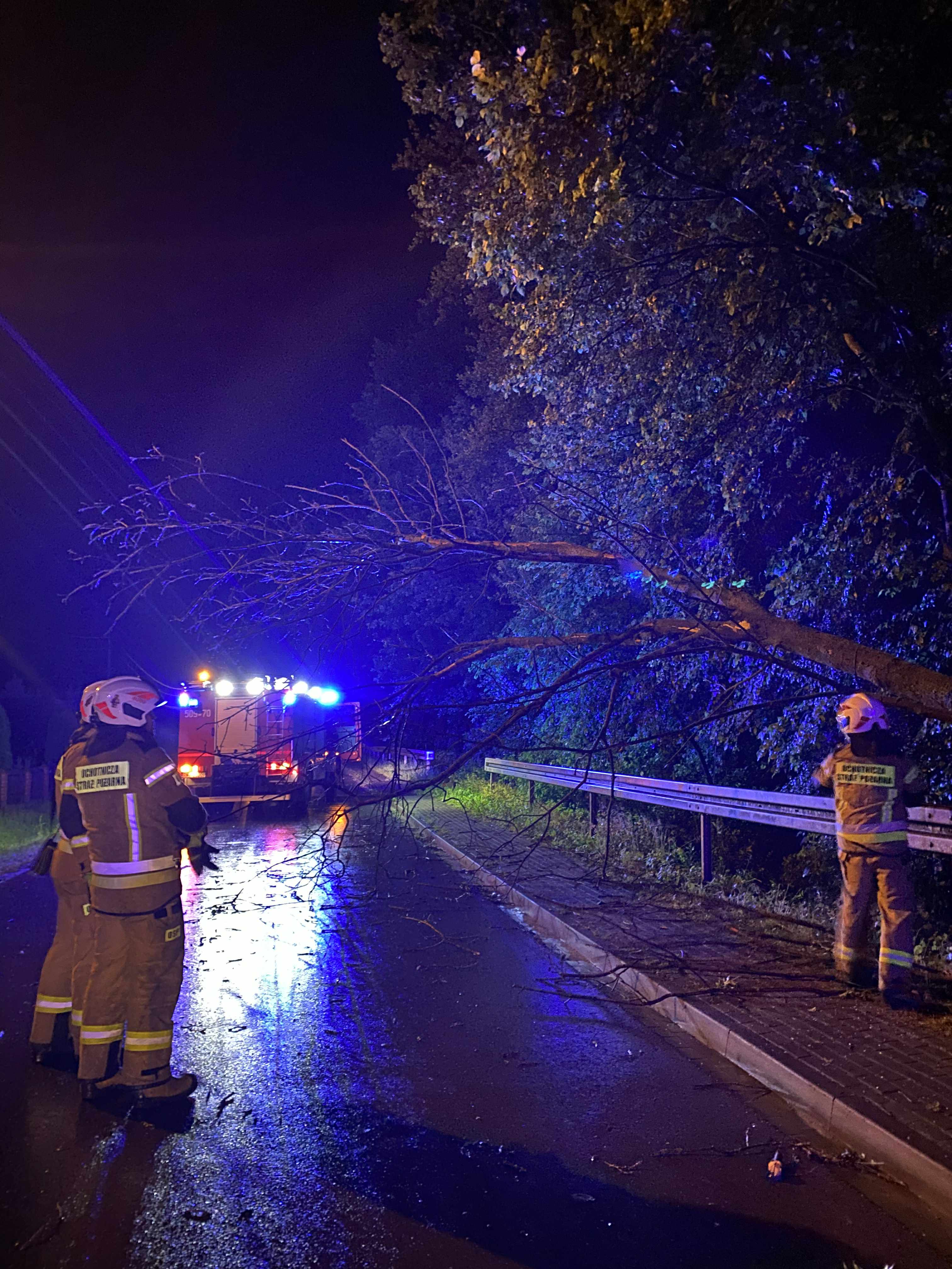 Wszystkie zgłoszenia są na bieżąco weryfikowane i obsługiwane przez jednostki Państwowej i Ochotniczej Straży Pożarnej z terenu powiatu mieleckiego. Działania prowadzone są w sposób ciągły, a strażacy pracują w trudnych warunkach, zapewniając bezpieczeństwo mieszkańcom i minimalizując skutki nawałnicy.
