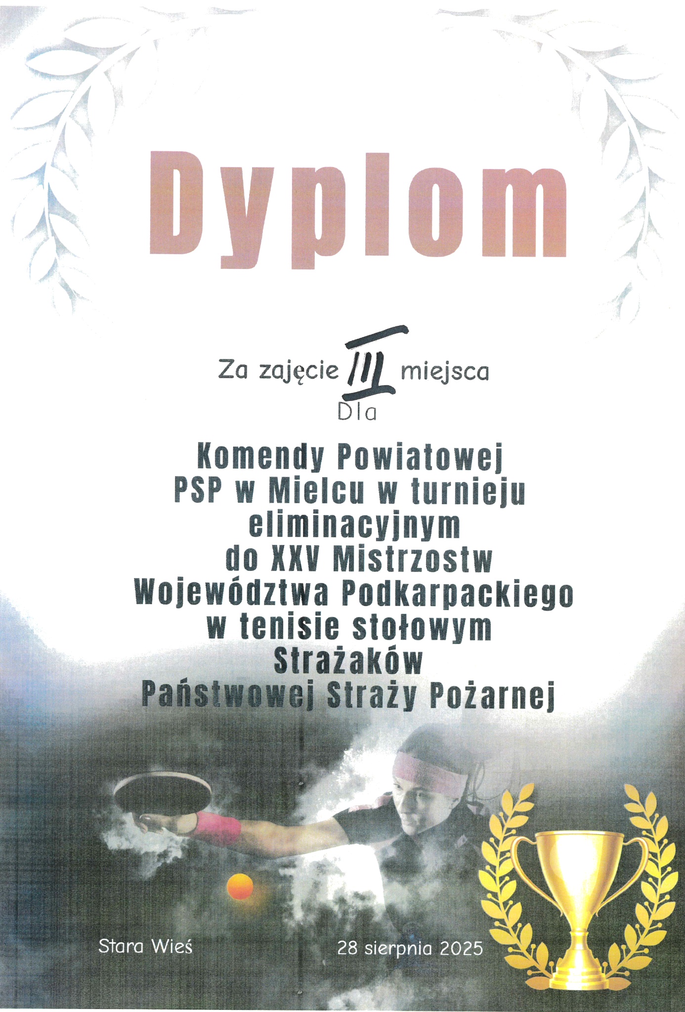 W dniu 28 sierpnia 2025 r. w hali sportowej Szkoły Podstawowej im. Najświętszego Serca Jezusa w Starej Wsi odbył się turniej eliminacyjny grupy „B” do XXV Mistrzostw Województwa Podkarpackiego Strażaków PSP w tenisie stołowym.