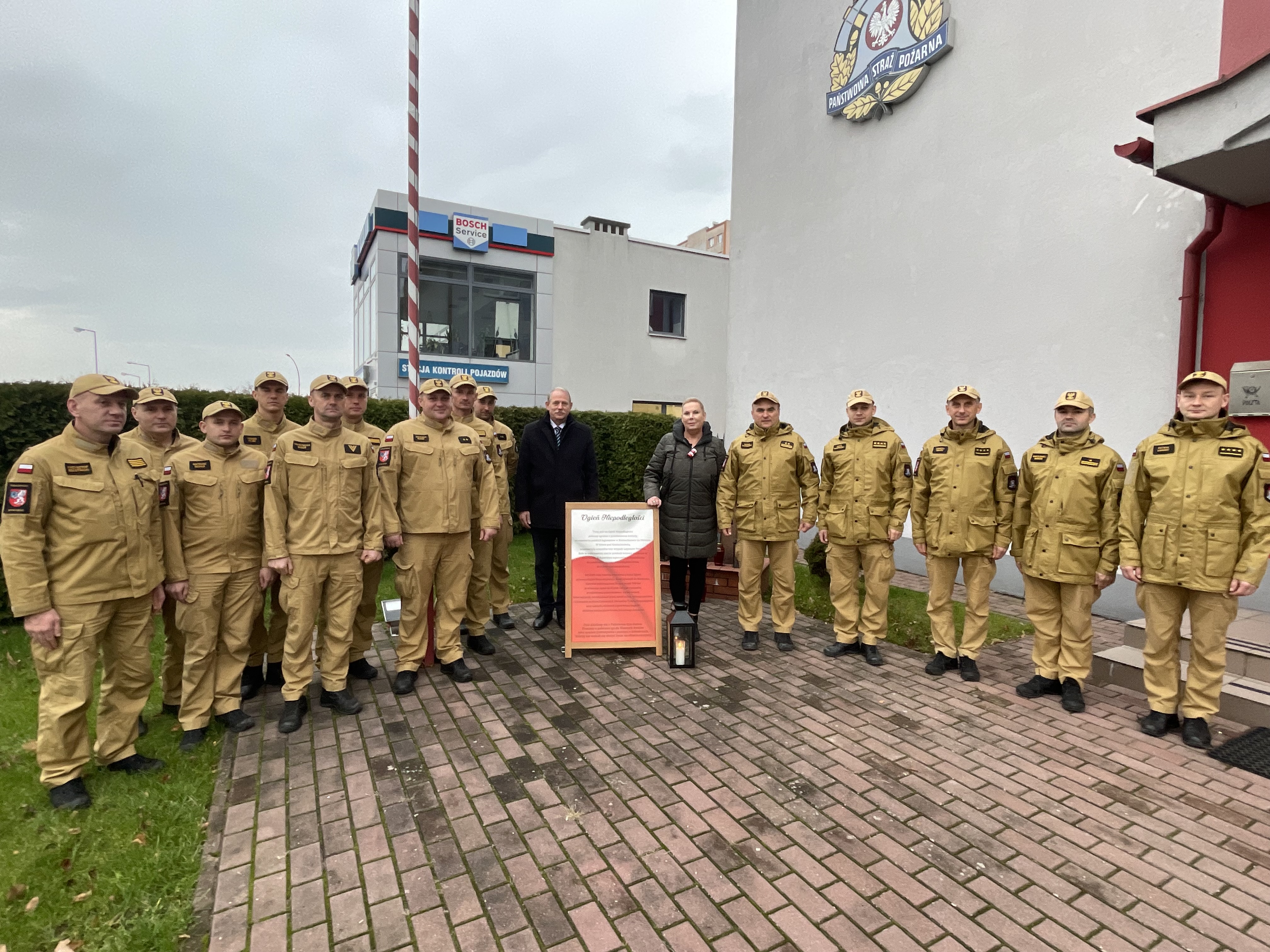 Ogień Niepodległości przed Komendą Powiatową PSP w Mielcu