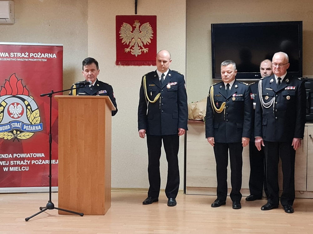 W uroczystości uczestniczyli zaproszeni goście, obecni i byli funkcjonariusze, pracownicy cywilni z komendy powiatowej PSP w Mielcu oraz najbliższa rodzina.