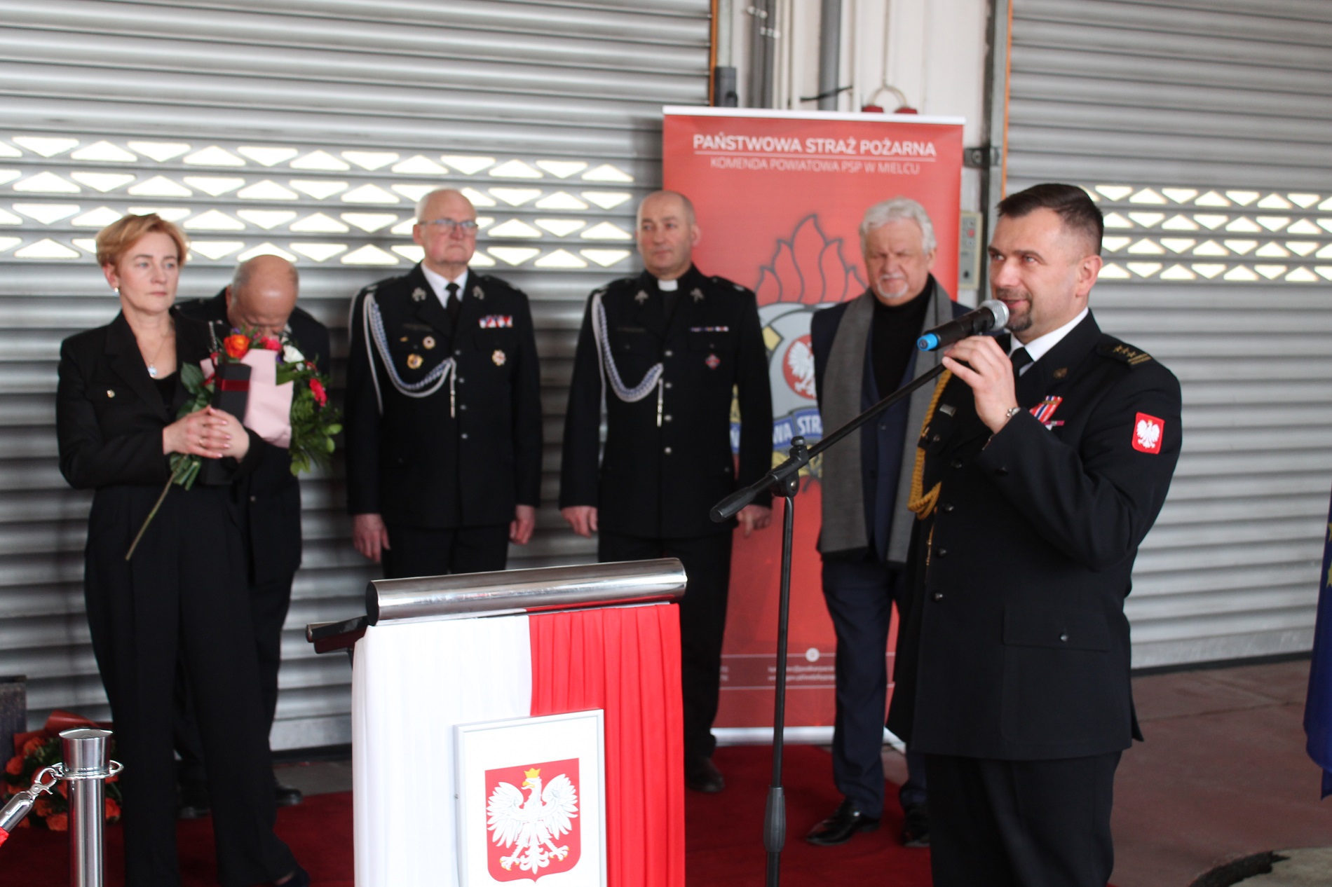 Po wprowadzeniu sztandaru komendy powiatowej PSP w Mielcu, obecnemu na uroczystości zastępcy podkarpackiego komendanta wojewódzkiego PSP, st.bryg. Andrzejowi Marczenia meldunek złożył dowódca uroczystości. Następnie odegrano i odśpiewano Hymn Państwowy, po którym wszystkich zgromadzonych w imieniu komendanta powiatowego i swoim przywitał st.bryg. Piotr Kędzior.