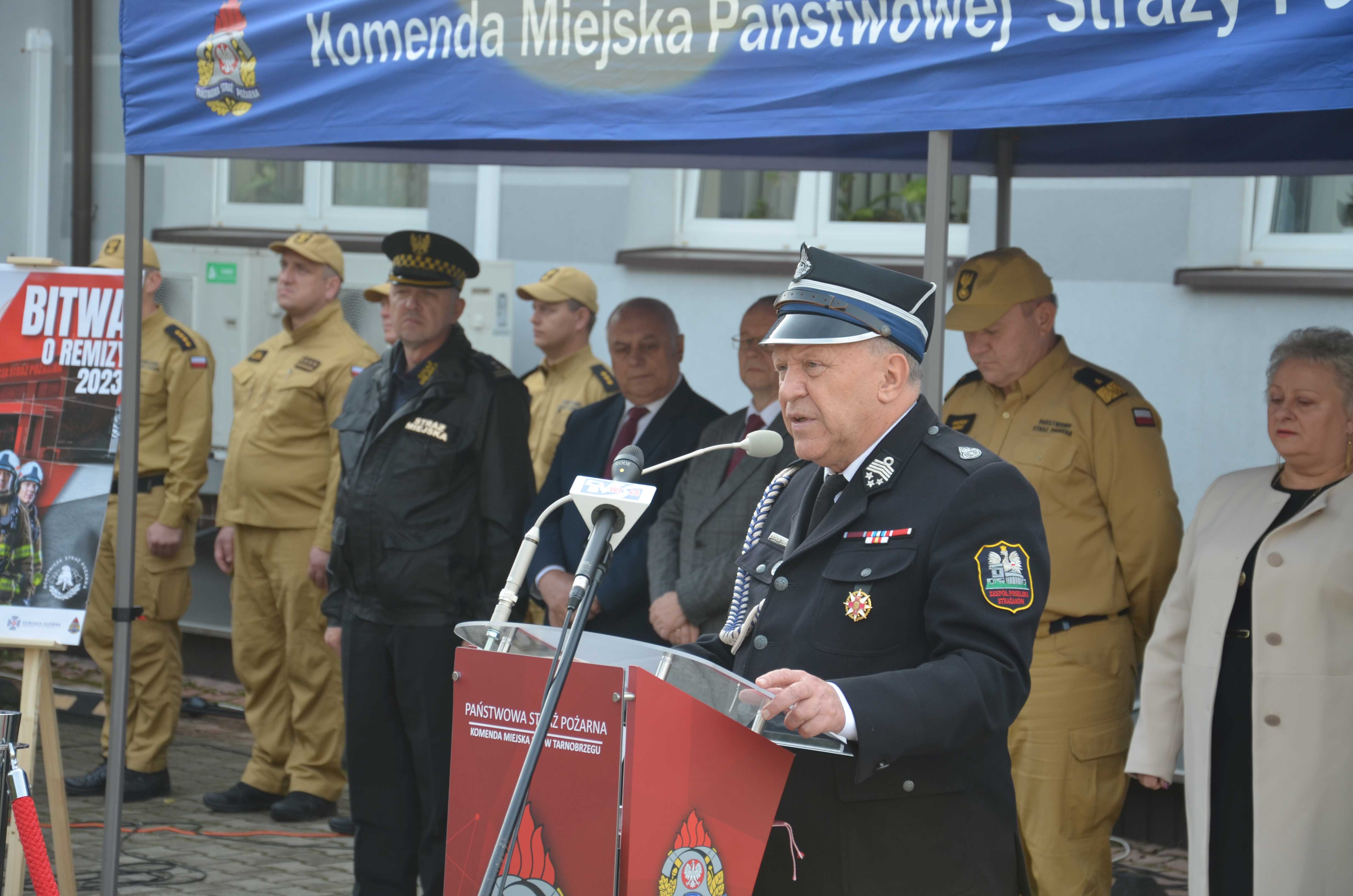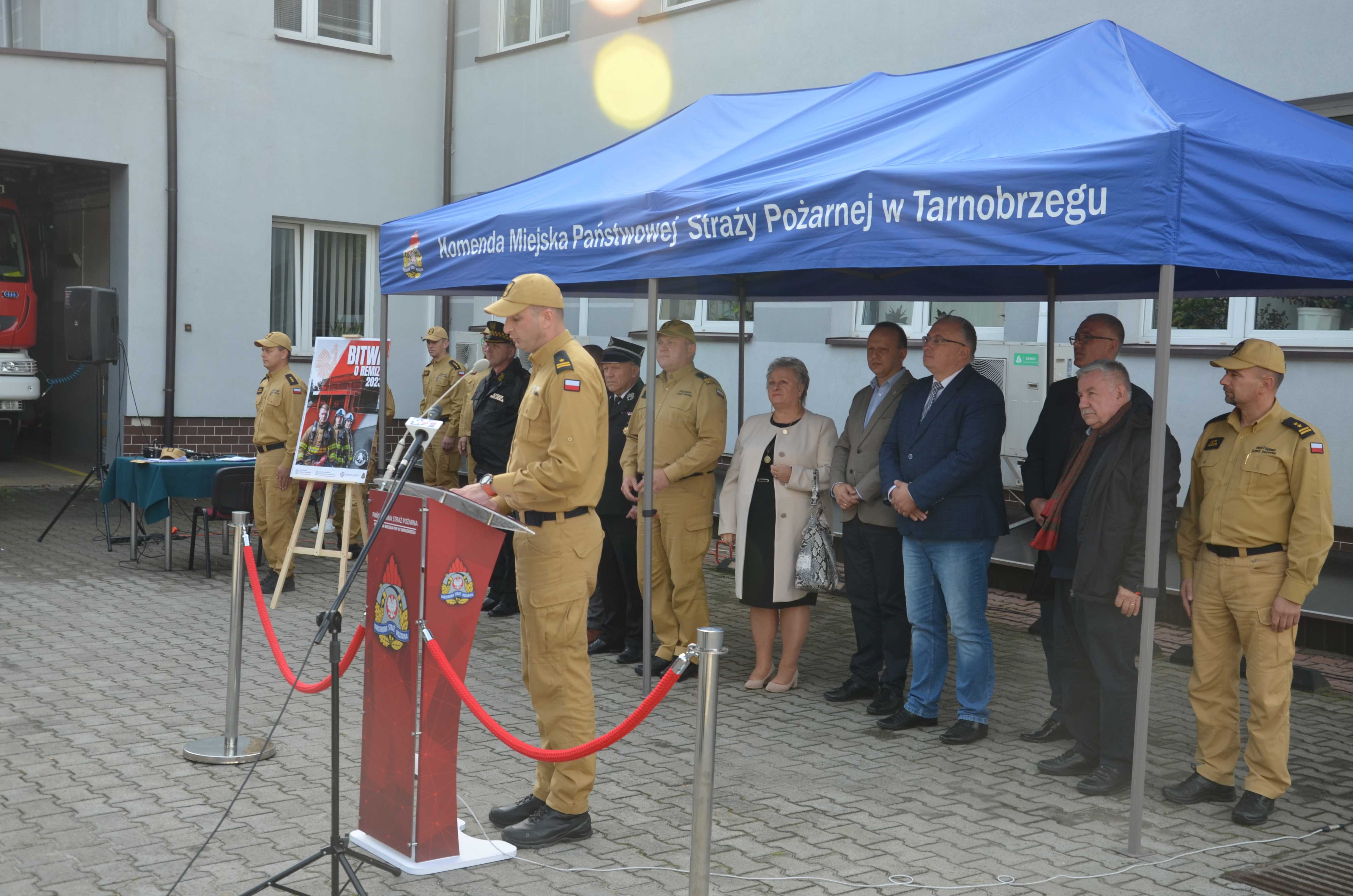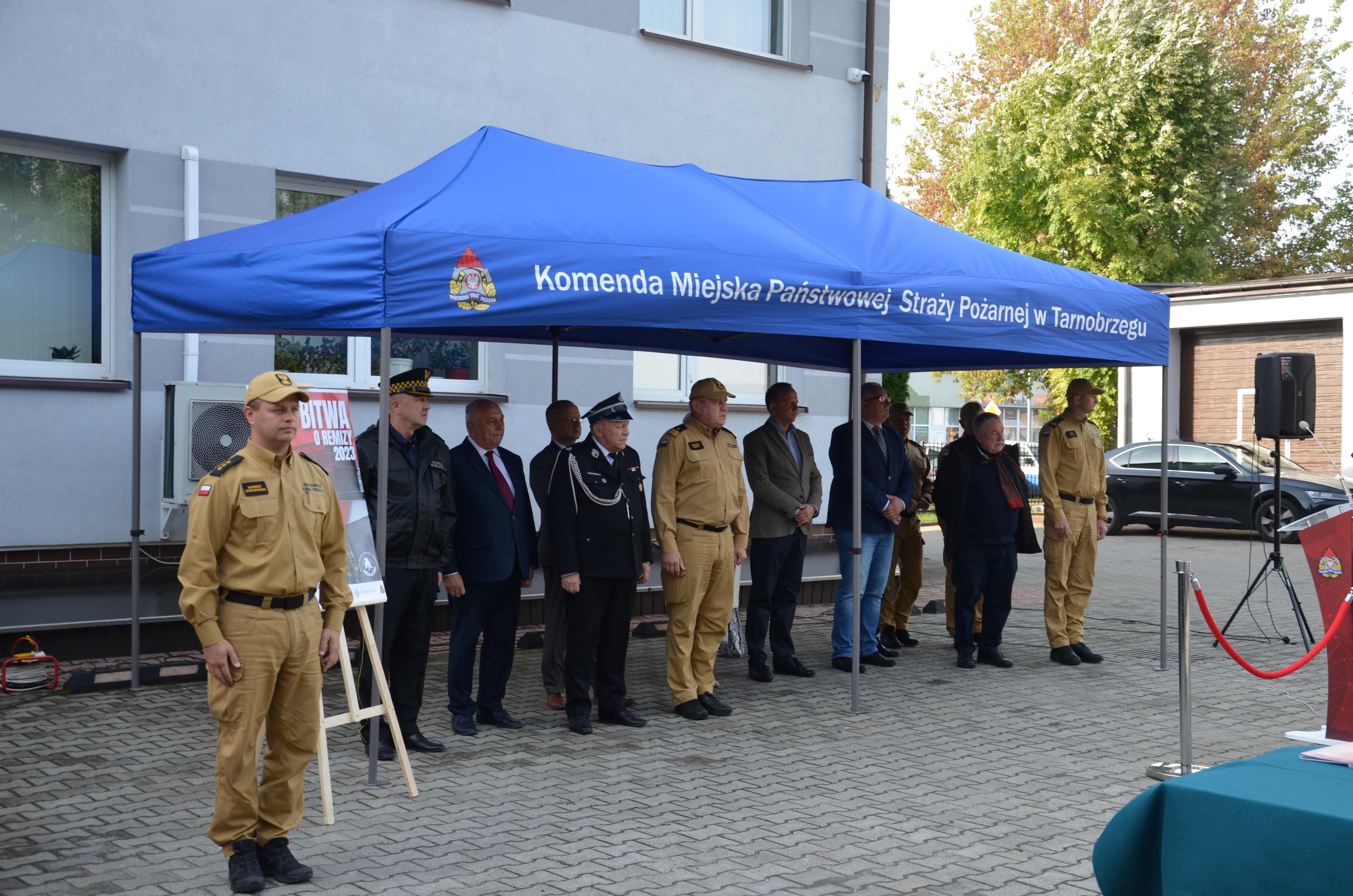W uroczystej zbiórce uczestniczył poseł na Sejm RP, przewodniczący Parlamentarnego Zespołu Strażaków Zbigniew Chmielowiec, podkarpacki komendant wojewódzki PSP nadbryg. Andrzej Babiec, starosta tarnobrzeski Jerzy Sudoł, komendant miejski PSP w Tarnobrzegu mł. bryg. Daniel Myszka, z-ca komendanta powiatowego PSP w Mielcu bryg. Piotr Kędzior, dyrektor Wojewódzkiego Ośrodka Ruchu Drogowego w Tarnobrzegu Kamil Kalinka, burmistrz miasta i gminy Baranów Sandomierski Marek Mazur, wójt Gminy Mielec Józef Piątek, wójt Gminy Borowa Stanisław Mieszkowski, wójt Gminy Czermin Sławomir Sidur, z-ca wójta gminy Gorzyce Lucyna Matyka, komendant straży miejskiej w Tarnobrzegu Robert Kędziora oraz przedstawiciele jednostek OSP, którym przyznano nowe urządzenia.