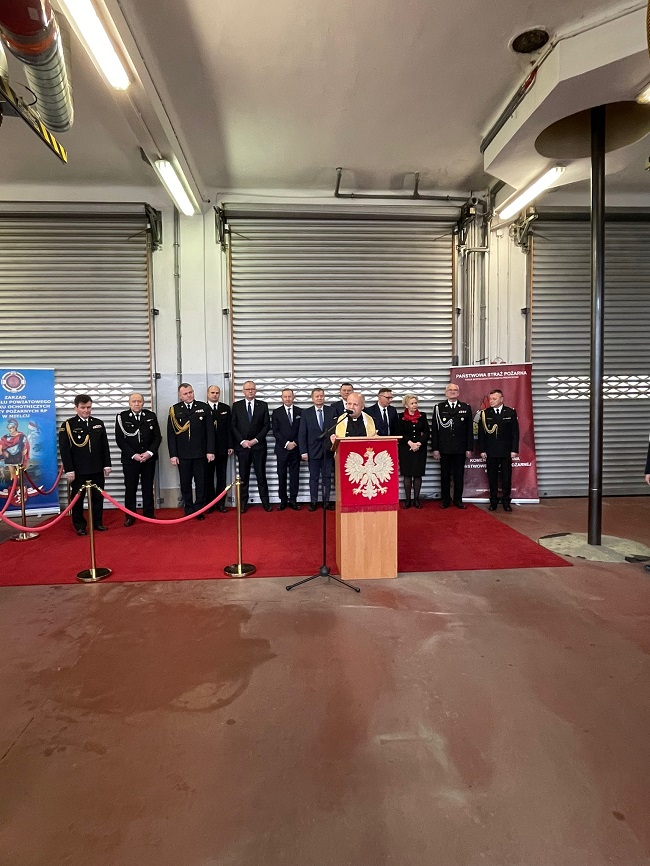 5 stycznia 2023 r na terenie komendy powiatowej Państwowej Straży Pożarnej w Mielcu odbyła się uroczysta zbiórka, w czasie której poświęcono i przekazano mieleckim strażakom samochód ratowniczo-gaśniczy GCBA 5/32 marki VOLVO.