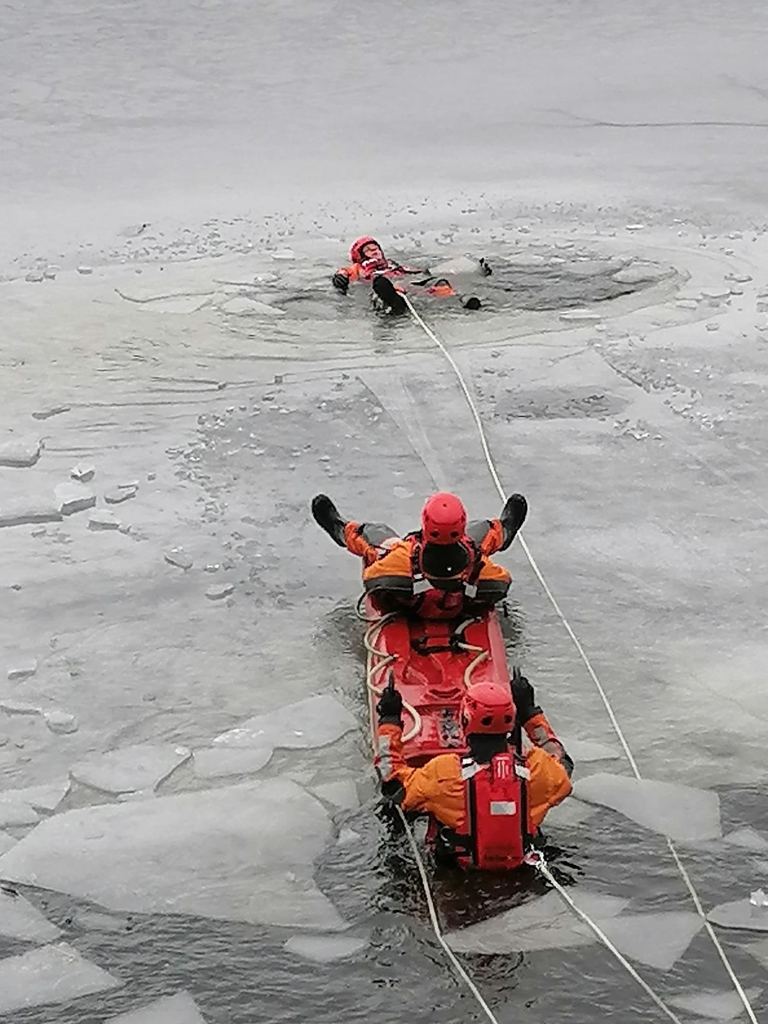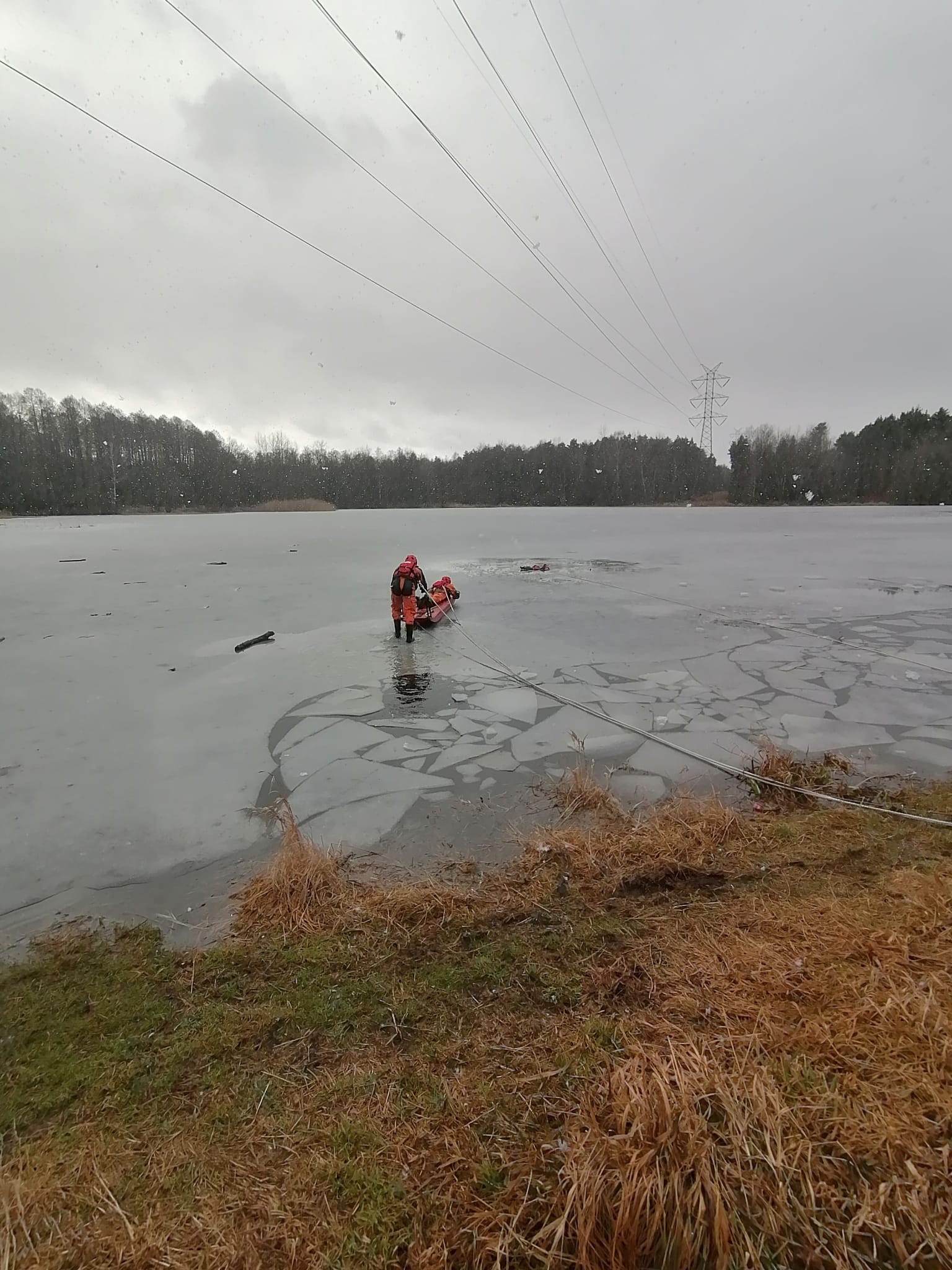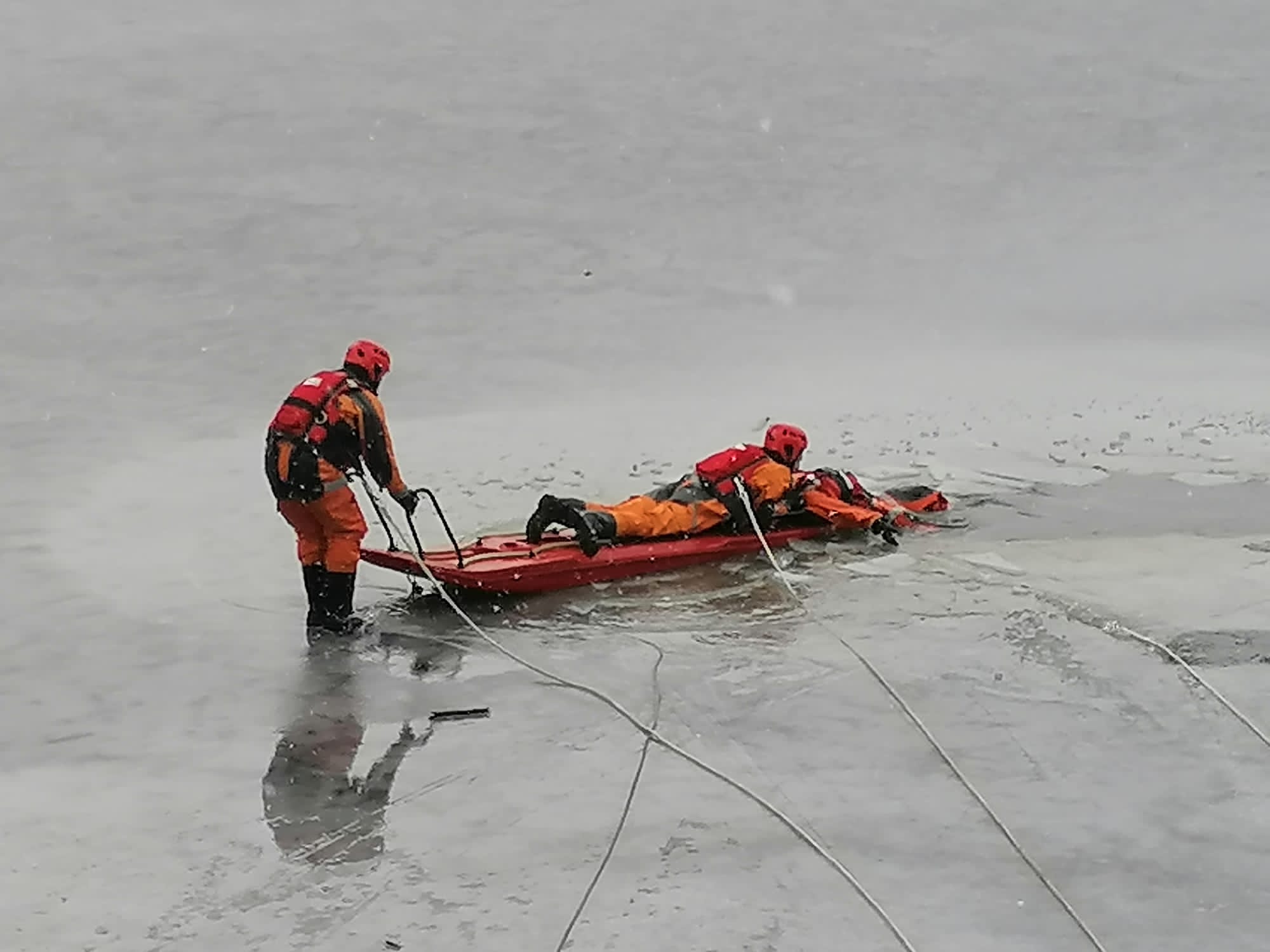 Ćwiczenia mikołowskich strażaków z zakresu ratownictwa lodowego