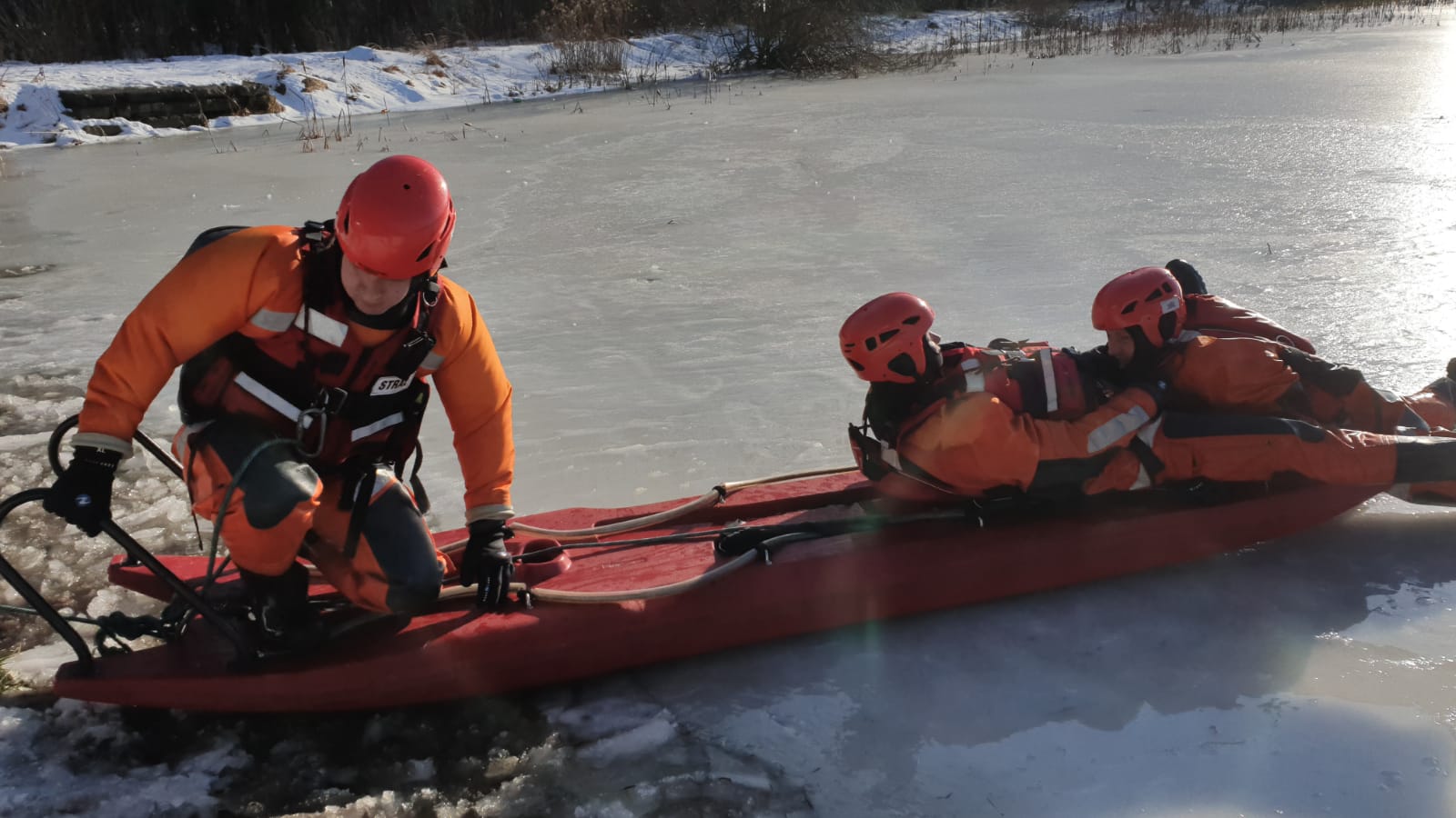 W dniu 20 i 21 stycznia 2021 roku na zbiorniku wodnym Starganiec w Mikołowie przy ul. Owsianej odbyły się ćwiczenia z zakresu ratownictwa lodowego, w których wzięli udział ratownicy JRG Mikołów. Podczas zajęć przećwiczono elementy ratownictwa z wykorzystaniem dostępnego sprzętu tj. deska ortopedyczna, sanie lodowe, pas typu węgorz, rzutki, kołowrót ratowniczy. Podczas ćwiczeń doskonalono także sposoby zabezpieczenia termicznego osób wyciągniętych z wody.