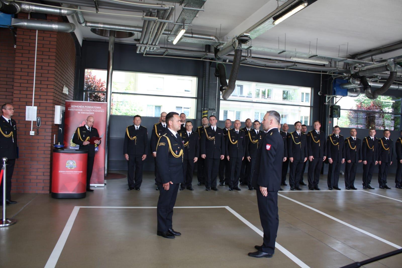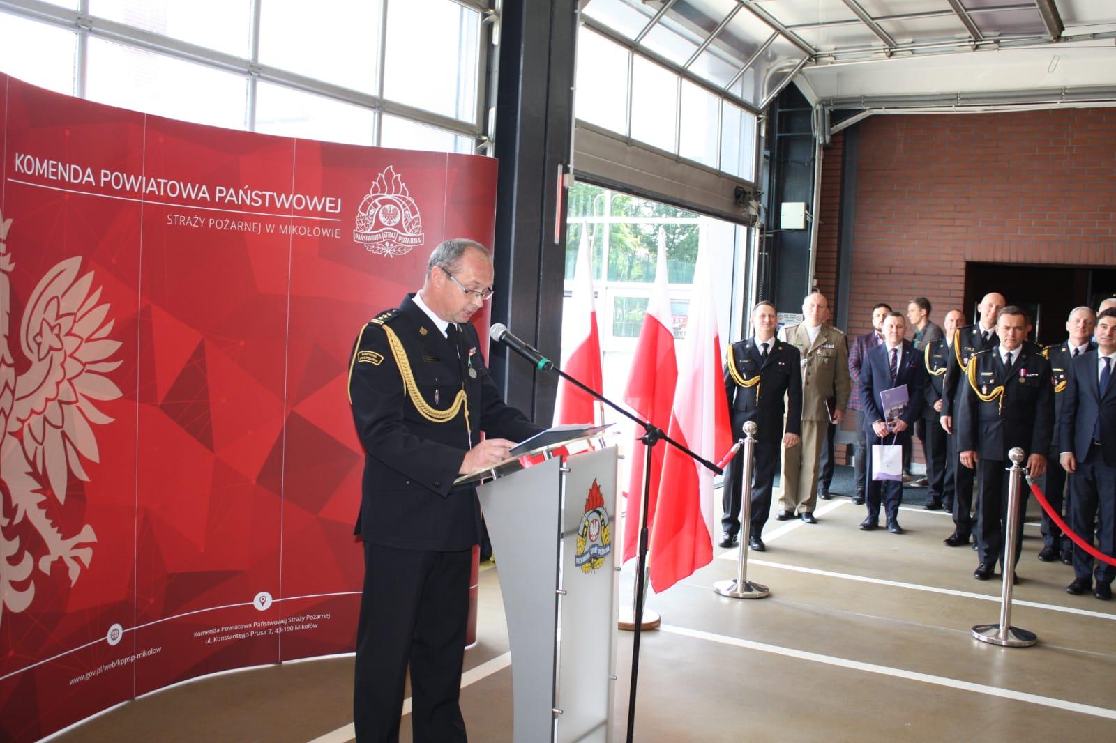 Obchody rozpoczęły się od złożenia meldunku przez dowódcę uroczystości st. kpt. Jakuba Gendarza Zastępcy Śląskiego Komendanta Wojewódzkiego PSP st. bryg. Arkadiuszowi Krzemińskiemu. Po odegraniu hymnu państwowego p. o. Komendanta Powiatowego Państwowej Straży Pożarnej w Mikołowie st. bryg. Radosław Radkowski przywitał zaproszonych gości.