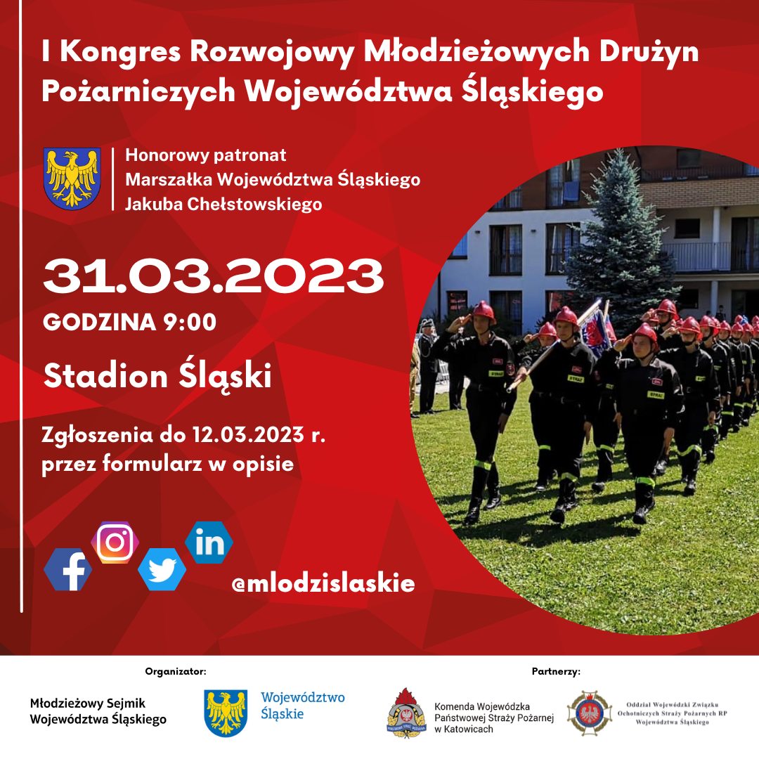 Kongres przeznaczony jest dla osób z terenu województwa śląskiego związanych z Młodzieżowymi Drużynami Pożarniczymi. Zapraszamy każdego, kto chce się zaangażować w rozwój MDP województwa śląskiego. Organizatorem Kongresu jest Młodzieżowy Sejmik Województwa Śląskiego. Wydarzenie odbędzie się 31 marca na Stadionie Śląskim.