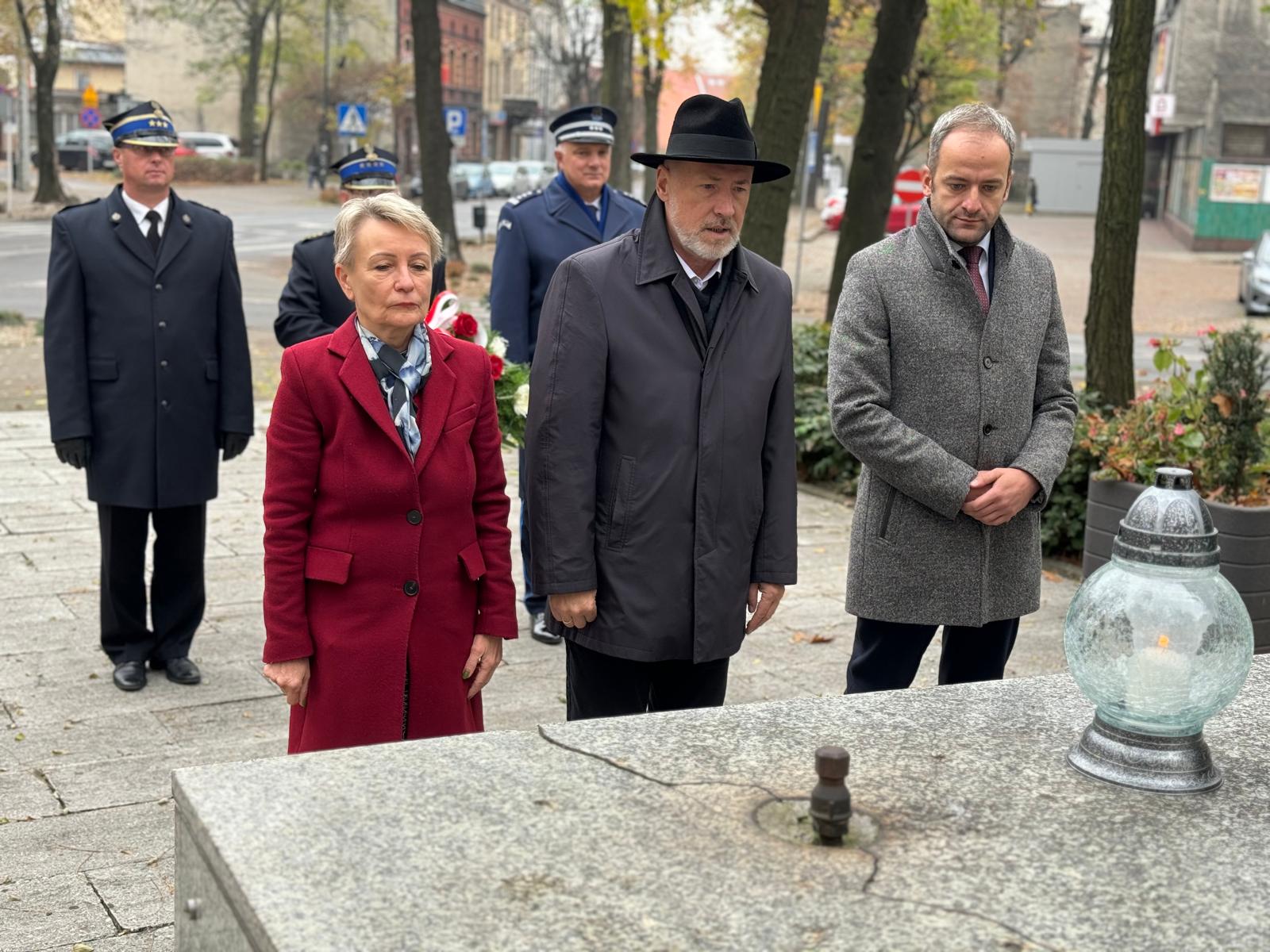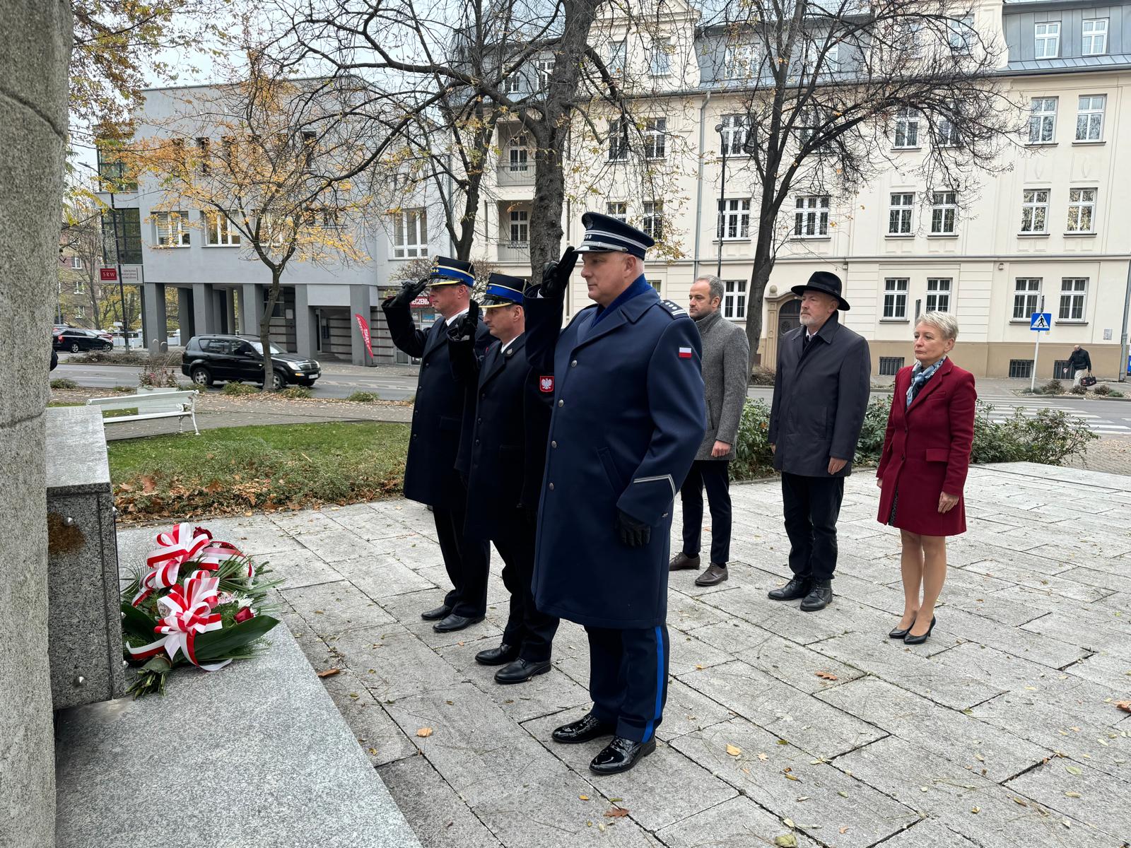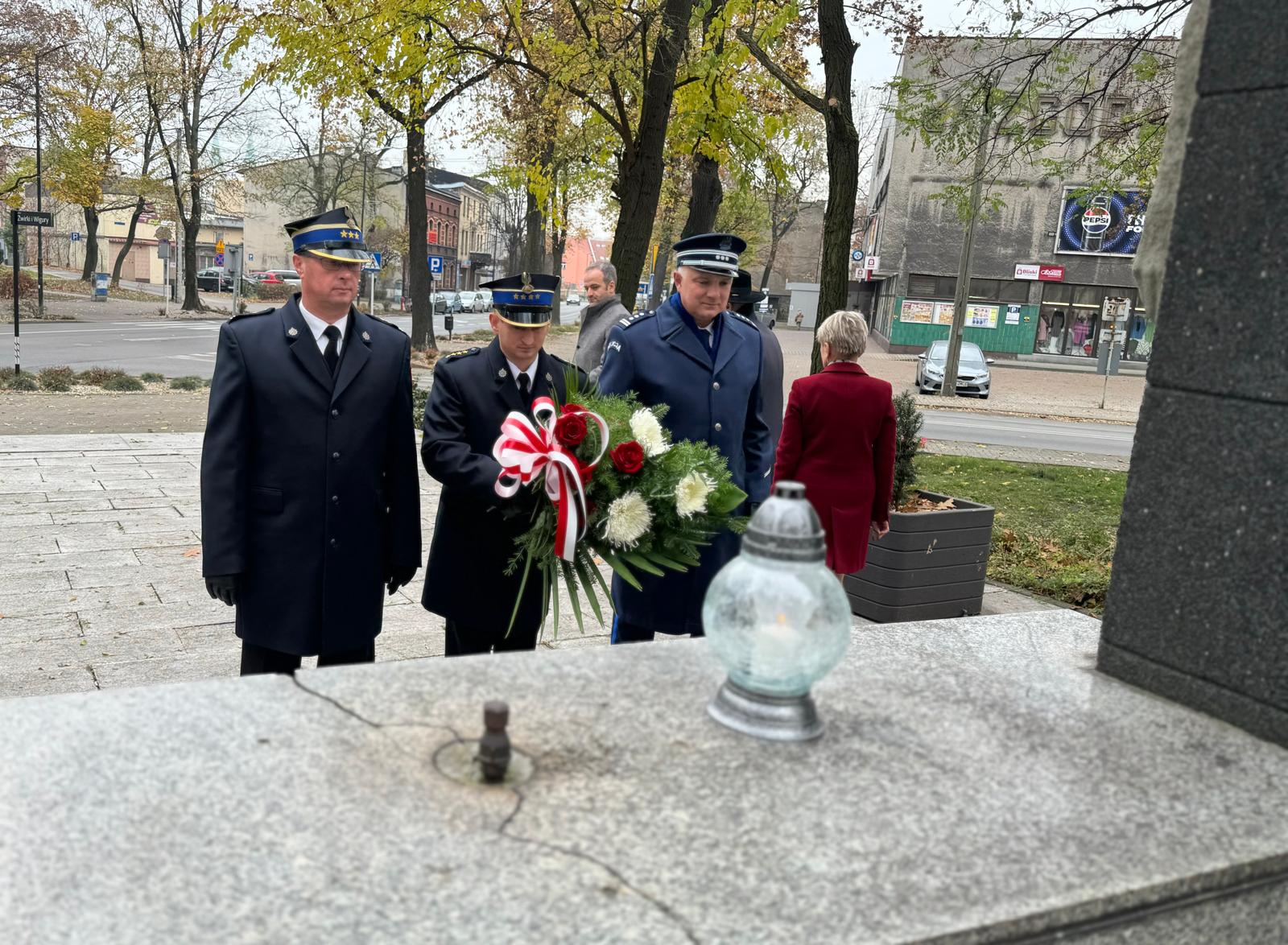 W Święto Niepodległości Komendant Powiatowy Państwowej Straży Pożarnej w Mikołowie st. bryg. Radosław Radkowski, jego zastępca st. kpt. Jakub Łukasik, Komendant Powiatowy Policji w Mikołowie insp. Krzysztof Czaja oraz władze powiatu na czele ze starostą Mirosławem Dużym, wicestarostą Jarosławem Sworzniem oraz członkinią Zarządu Powiatu Grażyną Nazar oddali cześć bohaterom naszej niepodległości składając wiązanki kwiatów i zapalając znicz pod pomnikiem Ofiar Faszyzmu w Mikołowie.