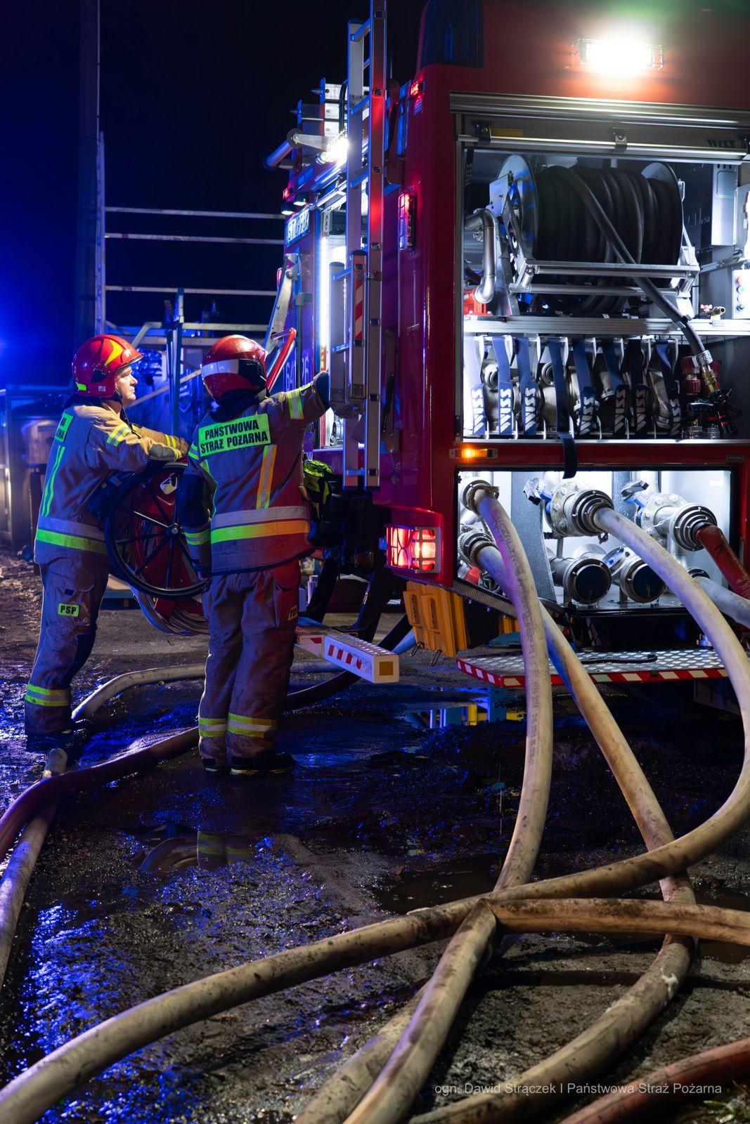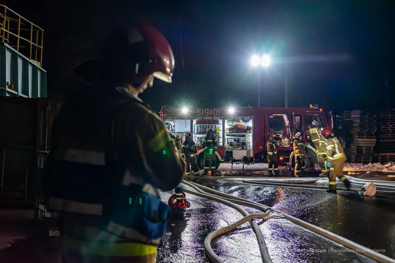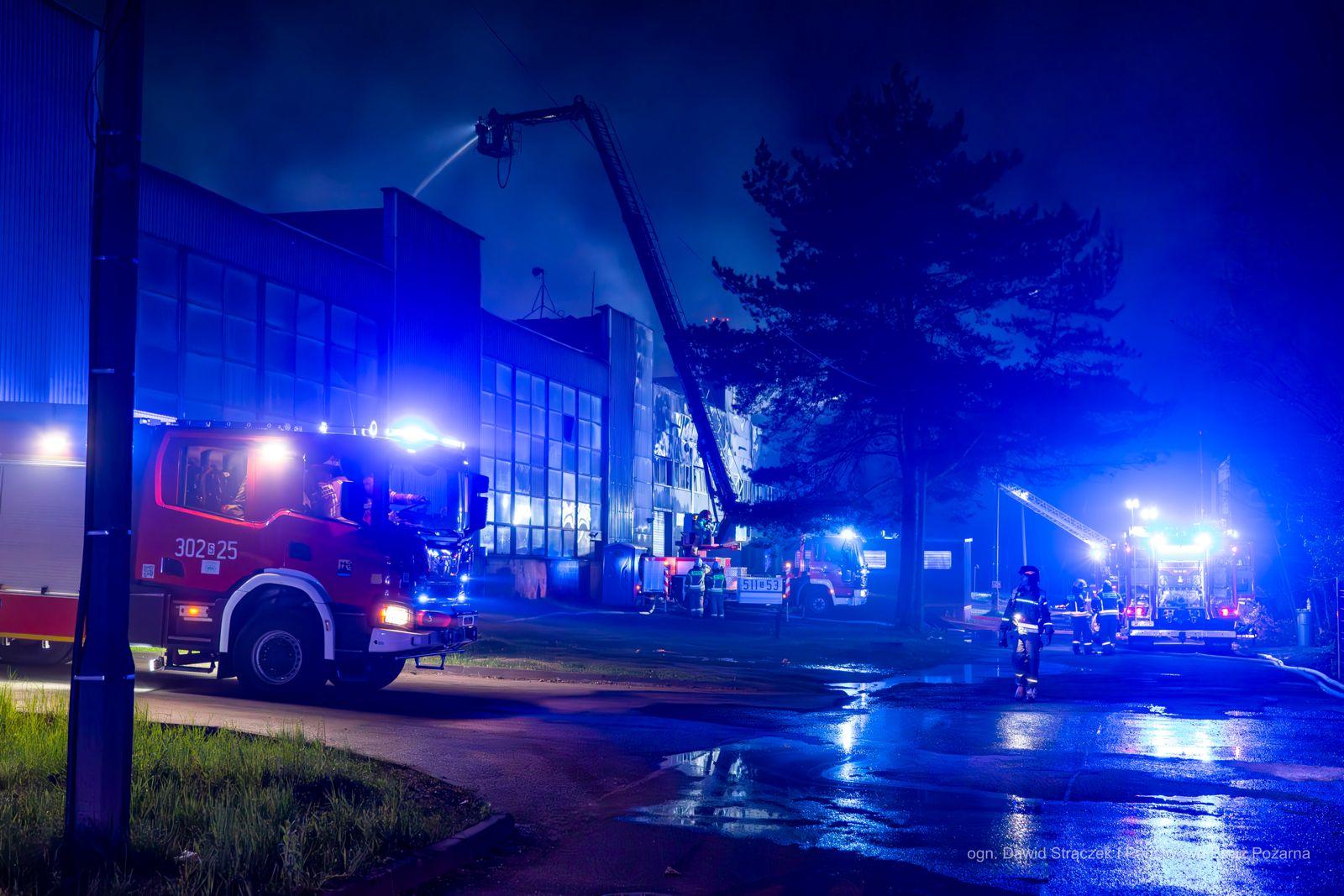 Objęty pożarem budynek stanowił część kompleksu bezpośrednio połączonych ze sobą budynków produkcyjno-magazynowych (jedna hala o wymiarach ok 200m x 130m x 8m podzielona na części - oddzielne firmy). 9 osób, które przebywały w obiekcie opuściły go przed przybyciem straży pożarnej. Powierzchnia pożaru to ponad 3200m kw. Na miejscu pracowali strażacy z Mikołowa, Katowic, Tychów, Rudy Śląskiej, Sosnowca, Siemianowic Śląskich, Dąbrowy Górniczej, Zabrza, Gliwic, Bytomia oraz jednostki OSP powiatu mikołowskiego. Obecny był również zastępca Komendanta Wojewódzkiego PSP st. bryg. Roman Klecha i grupa operacyjna KW PSP w Katowicach. O godzinie 23:30 pożar został opanowany i strażacy przystąpili do dogaszania pogorzeliska, które trwa do tej pory. Za monitorowanie jakość powietrza wokół hali odpowiedzialny był zastęp z jednostki chemicznej z JRG Katowice Piotrowice. Nie było potrzeby ewakuowania mieszkańców pobliskich zabudowań. Po zakończeniu działań czynności wyjaśniające prowadzić będzie Policja.