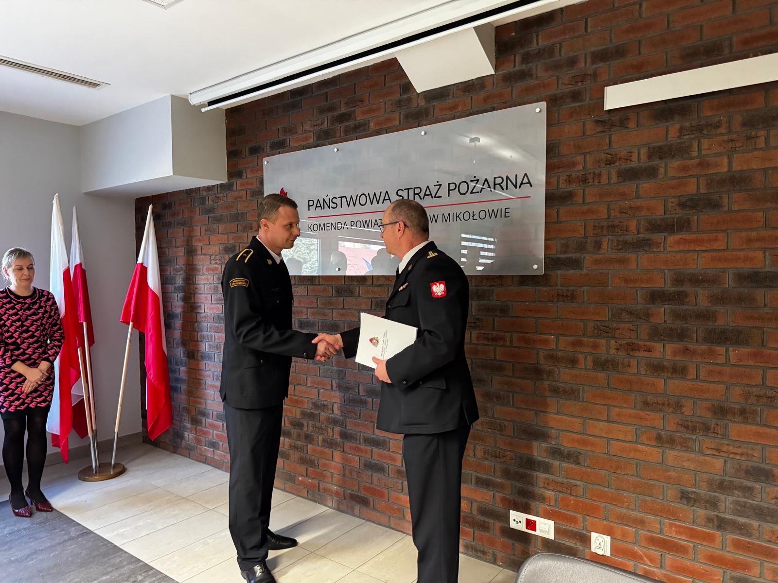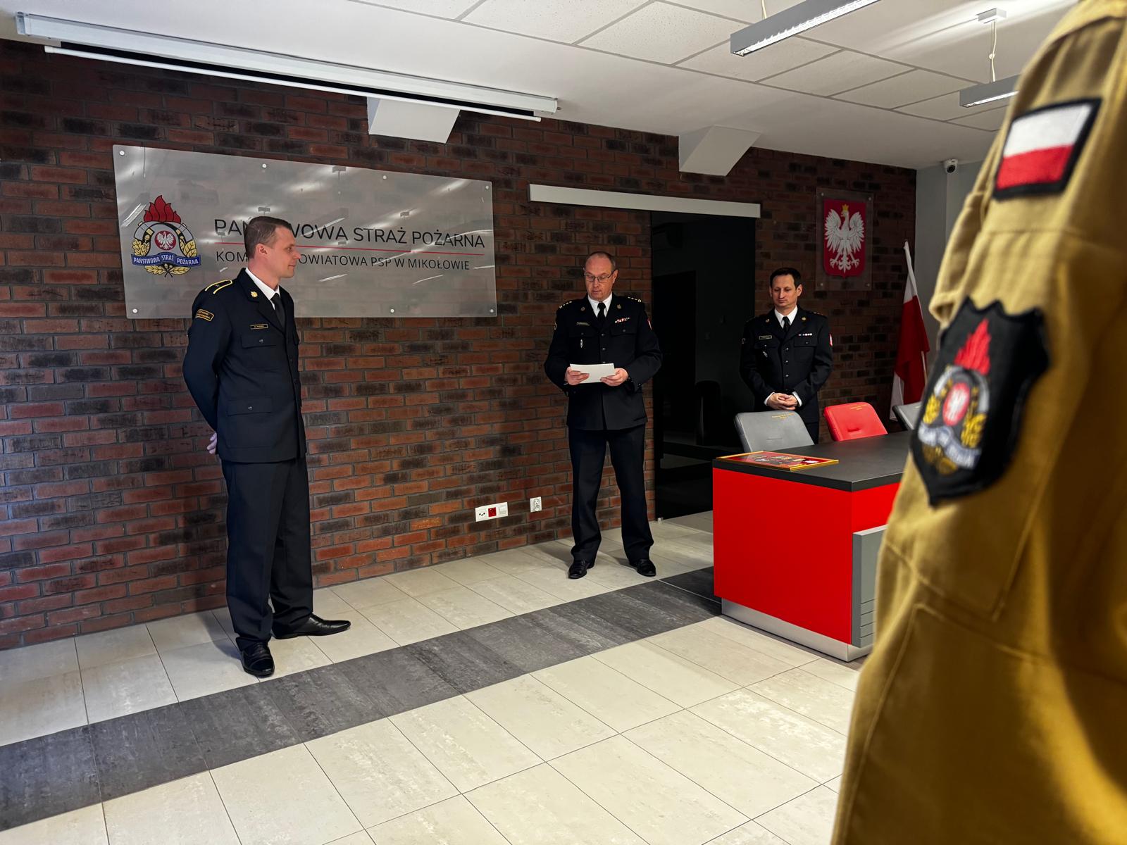 4 marca 2025 roku w Komendzie Powiatowej PSP w Mikołowie w obecności Komendanta Powiatowego Państwowej Straży Pożarnej w Mikołowie st. bryg. Radosława Radkowskiego oraz funkcjonariuszy i pracowników cywilnych odbyło się uroczyste pożegnanie odchodzącego na zaopatrzenie emerytalne asp. Krystiana Paszka. Komendant złożył podziękowania za lata służby, postawę godną naśladowania, wysokie poczucie obowiązku i zaangażowanie, życząc pomyślności, zdrowia i sukcesów w realizacji przyszłych planów.