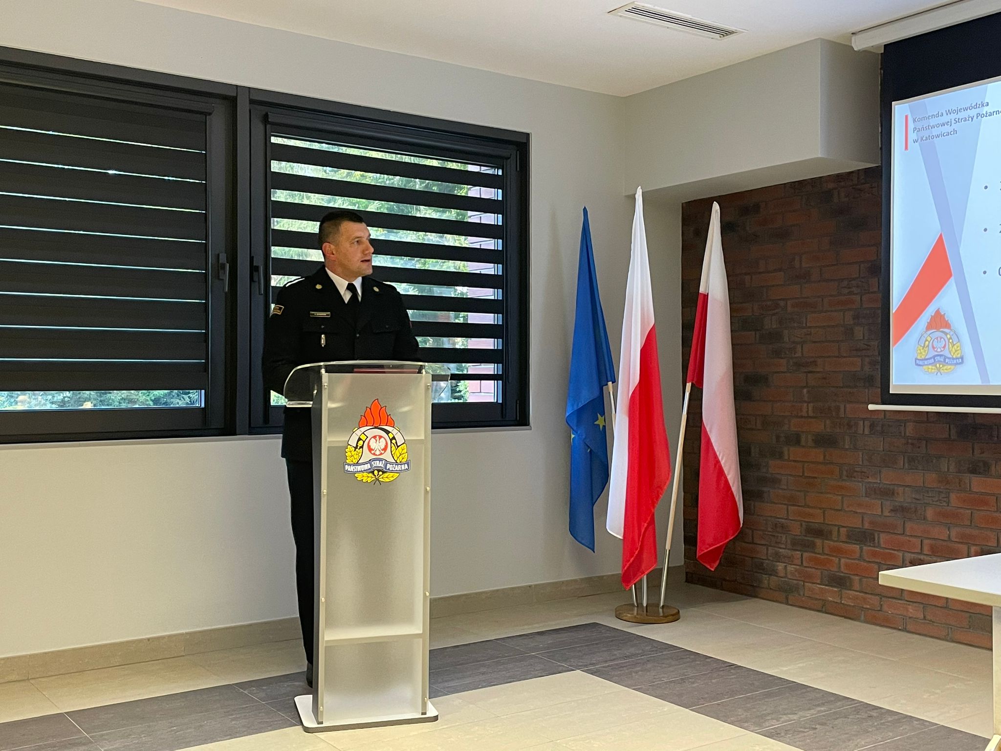 Po powitaniu zebranych gości Komendant Powiatowy st. bryg. Damian Krawczyk omówił obszar chroniony, zwracając szczególną uwagę na występujące zagrożenia. Następnie przedstawił w formie prezentacji multimedialnej stan jednostek OSP w powiecie mikołowskim w zakresie warunków lokalowych, wyposażenia sprzętowego, stanu osobowego oraz statystyk działalności interwencyjnej w ostatnich latach.