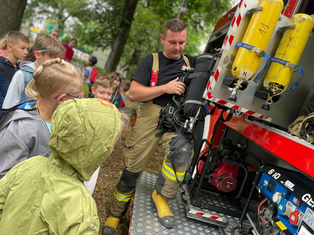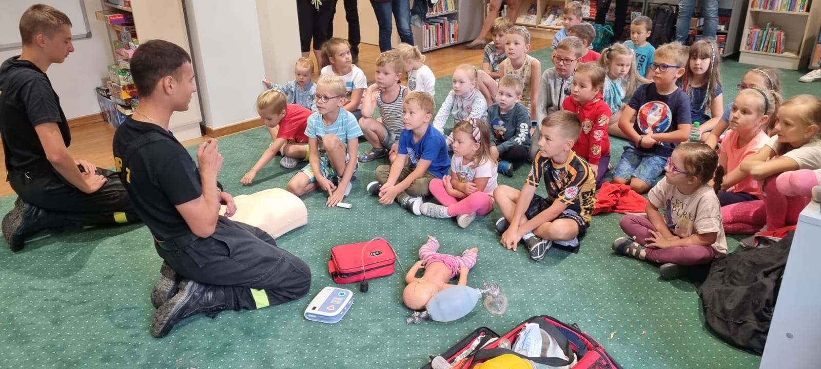 26 lipca 2022 roku w ramach akcji Wakacje z Biblioteką pod nazwą "Kręci Nas bezpieczeństwo" wspólnie z Policjantami i druhami OSP Łaziska Górne przedstawiliśmy dzieciom na czym polega służba strażaka i policjanta. Najmłodsi podczas spotkania uczyli się udzielania pierwszej pomocy, samoobrony oraz bezpiecznych zachowań podczas wakacji.