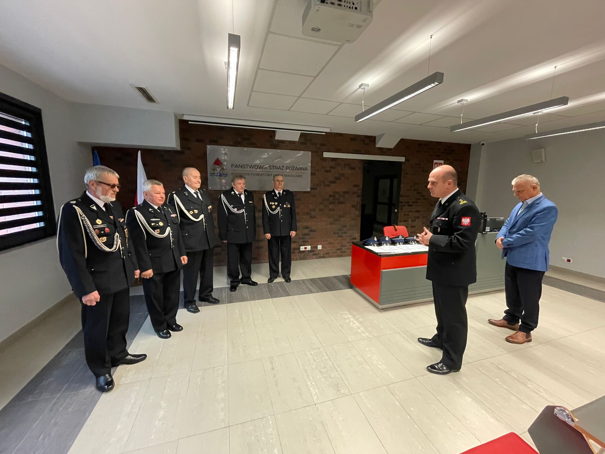 6 kwietnia 2022 r. w siedzibie naszej komendy Komendant Powiatowy Państwowej Straży Pożarnej w Mikołowie bryg. Damian Krawczyk wręczył pierwsze decyzje o przyznaniu świadczenia ratowniczego przeznaczonego dla członków ochotniczych straży pożarnych z terenu powiatu mikołowskiego.