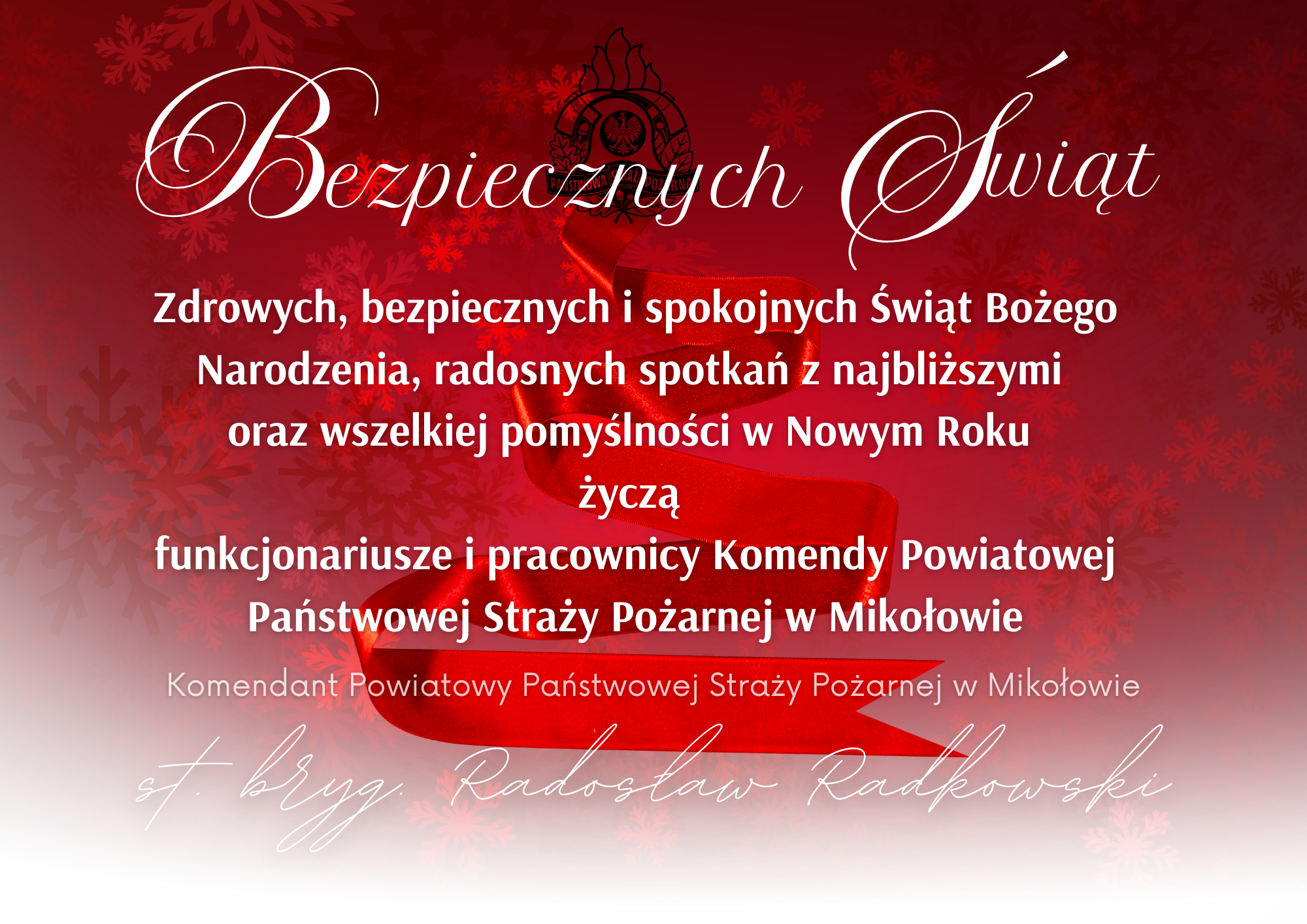 Życzenia Komendanta Powiatowego PSP w Mikołowie z okazji Świąt Bożego Narodzenia